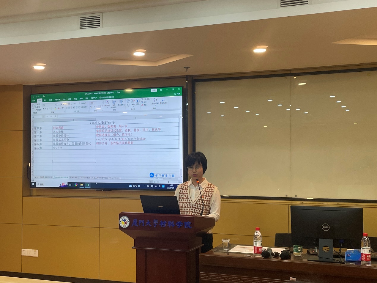 为进一步增强材料学院师生对于办公软件的应用技巧,提升工作效率,2023年4月6日上午,材料学院办公室党支部邀请到校学生处符晓珠老师开展《那些相见恨晚的excel技巧分析》培训。本次活动由学院党委副书记黄兆君老师主持。办公室党支部、研究生中心党支部及本科学生会、研究生会等学生干部参加。