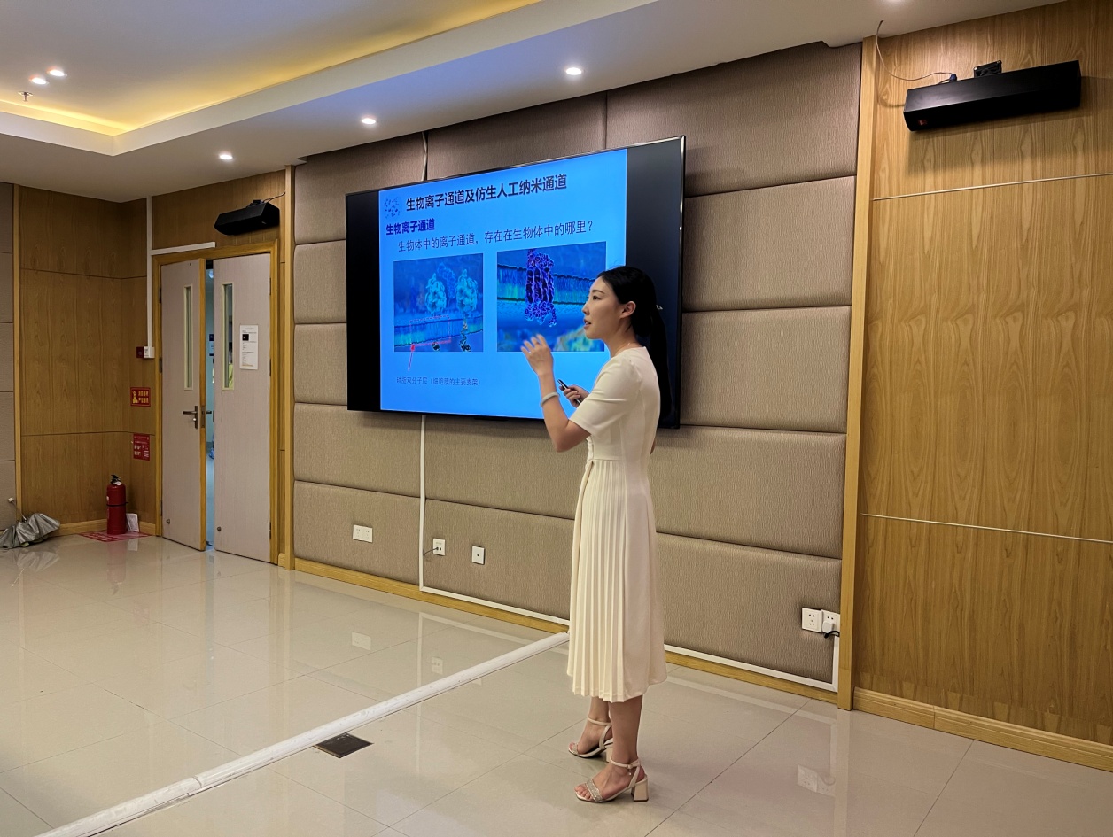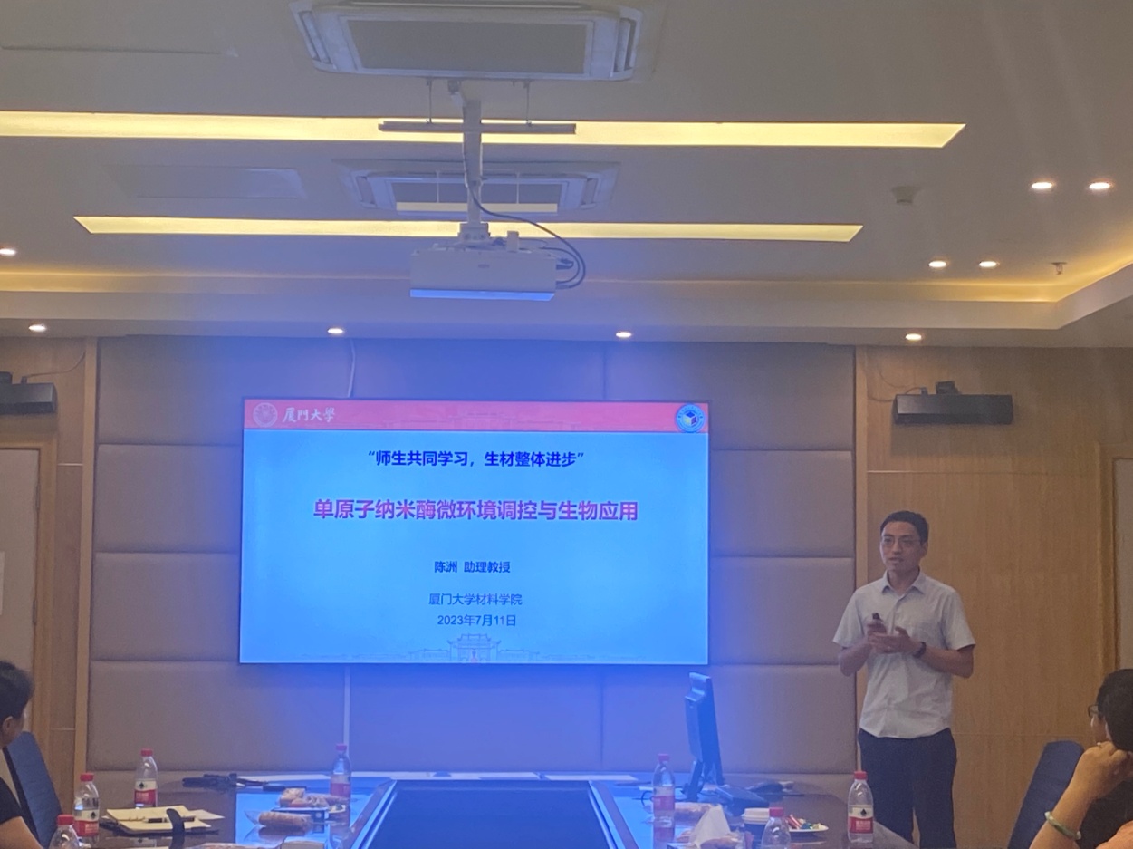 青年教师代表王苗和陈洲两位老师分别带来了精彩的学术报告。王苗老师介绍了生物离子通道与仿生人工纳米通道材料,分享了仿生人工纳米通道材料的应用前景。陈洲老师结合生物材料学科的特点,与在座师生分享了“单原子纳米酶微环境调控与生物应用”的研究报告,介绍了材料微观结构的改变如何对酶催化活性产生影响。报告激发了同学们对生物材料学科的兴趣和对科学探索的热情。
