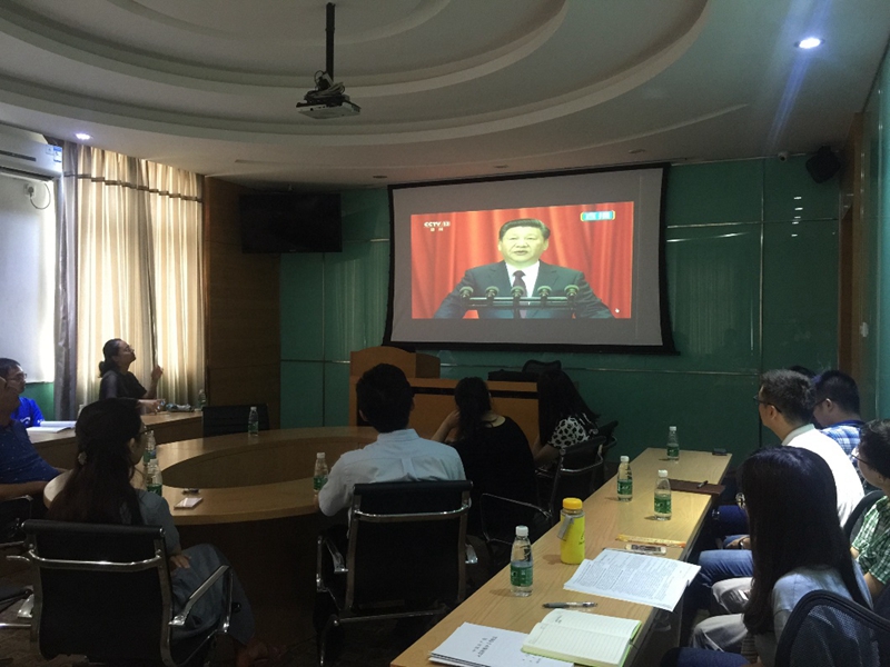 在观看完此次大会直播视频之后,与会人员就观看内容展开了座谈。在座谈会上,学院党委副书记庄曦强调了将习近平总书记在纪念红军长征胜利80周年大会上的讲话纳入“两学一做”学习教育中去的必要性和重要性。“自治者英,自胜者雄,民族复兴梦想越接近,改革开放任务越繁重,越要加强党的建设”,庄老师希望此次参与观看的党员同志要不忘初心,坚定地朝着我们的方向前进。“人无精神则不立,国无精神则不强” ,校学生处管理科科长袁国柱指出,我们每一代人必须始终不渝坚定共产主义远大理想和中国特色社会主义共同理想,为崇高理想信念而努力奋斗,带着这种长征精神继续前进。