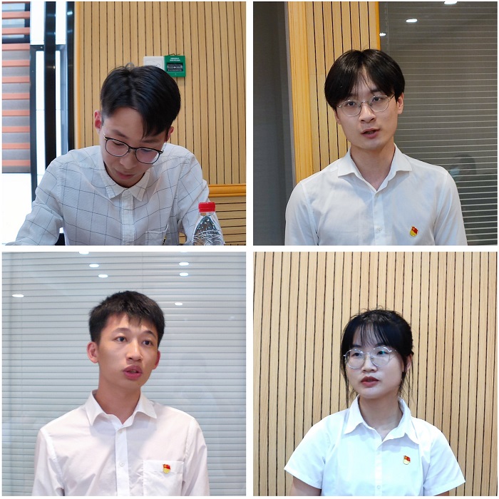 在听完老党员的发言后,新党员代表2020级硕士第一党支部张晨杰、2020级硕士第二党支部董家浩、2020级硕士第三党支部林泽文、2020级硕士第四党支部谢祎馨也积极分享了自己的入党动机与初衷,他们表示将会铭记入党誓词,以加入中国共产党为新起点,担当责任,为国家建设奉献绵薄之力。