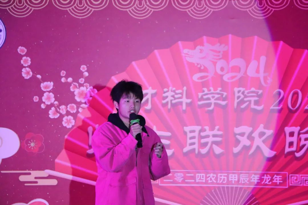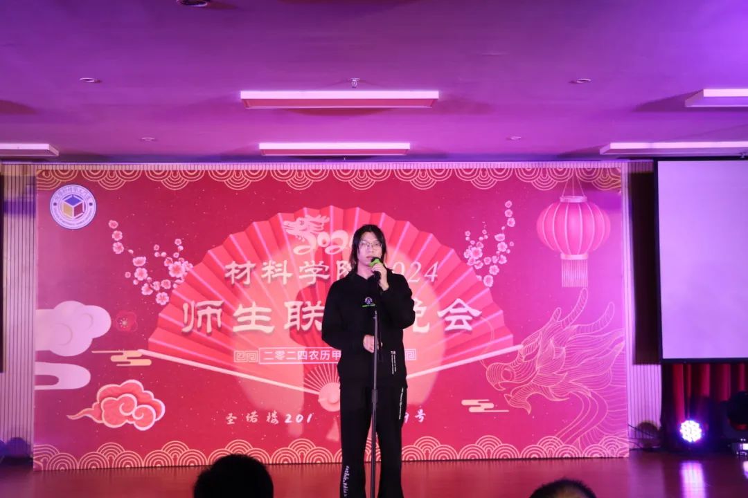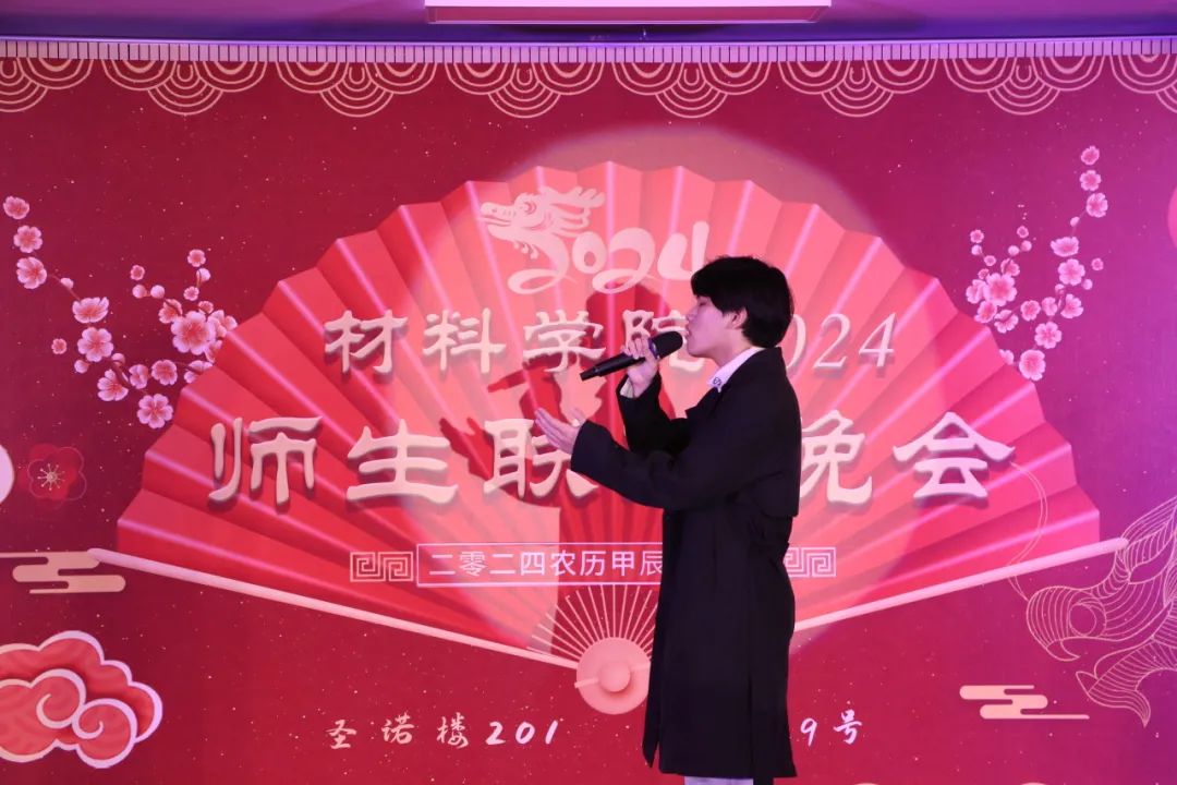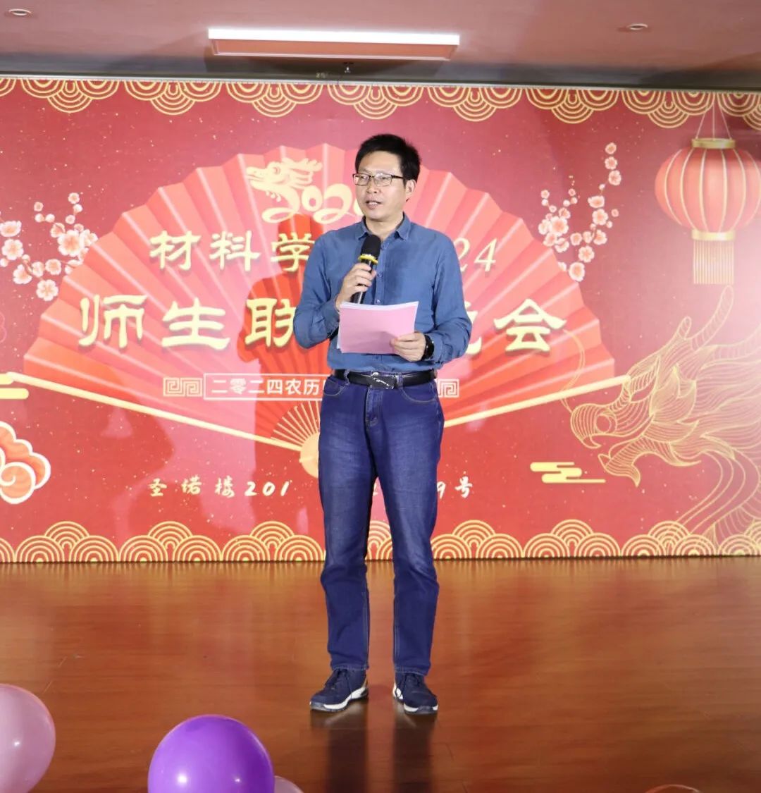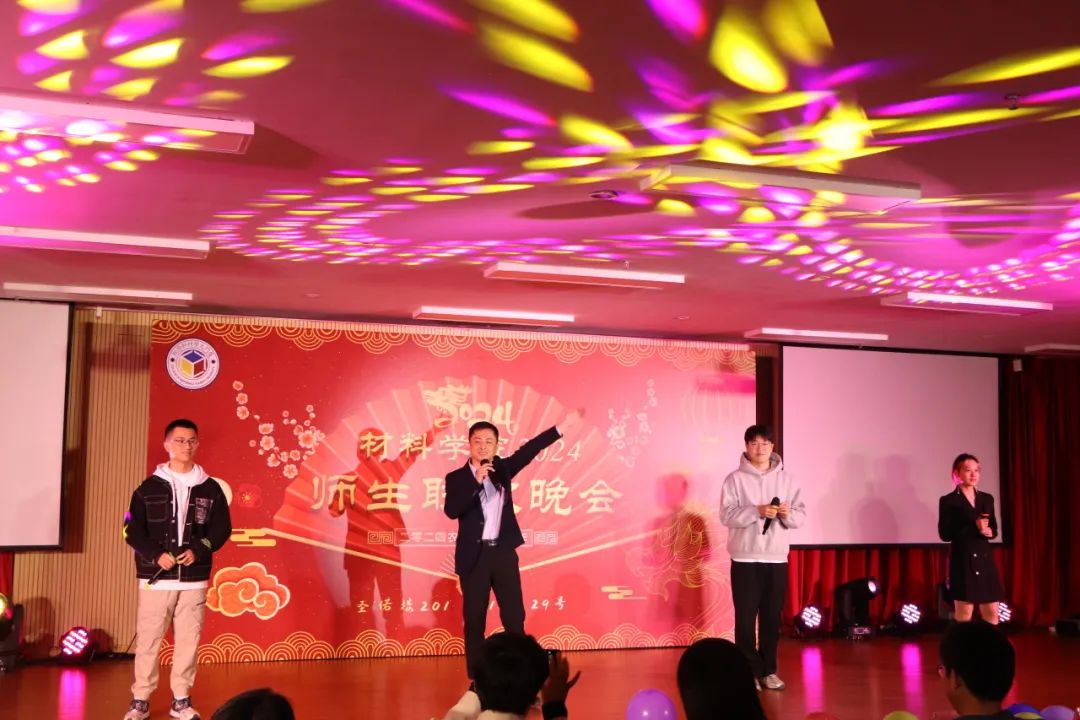 晚会的开始,院长解荣军老师致辞,他带我们回顾了材料学院在过去的一年在科研创新、教育教学、人才培养等方面取得的成绩。接着,院长寄语大家要胸怀“国之大者”,勇担强国重任,扎实推进高水平材料学科建设,以实际行动回应“强国建设、厦大何为”这一时代课题。