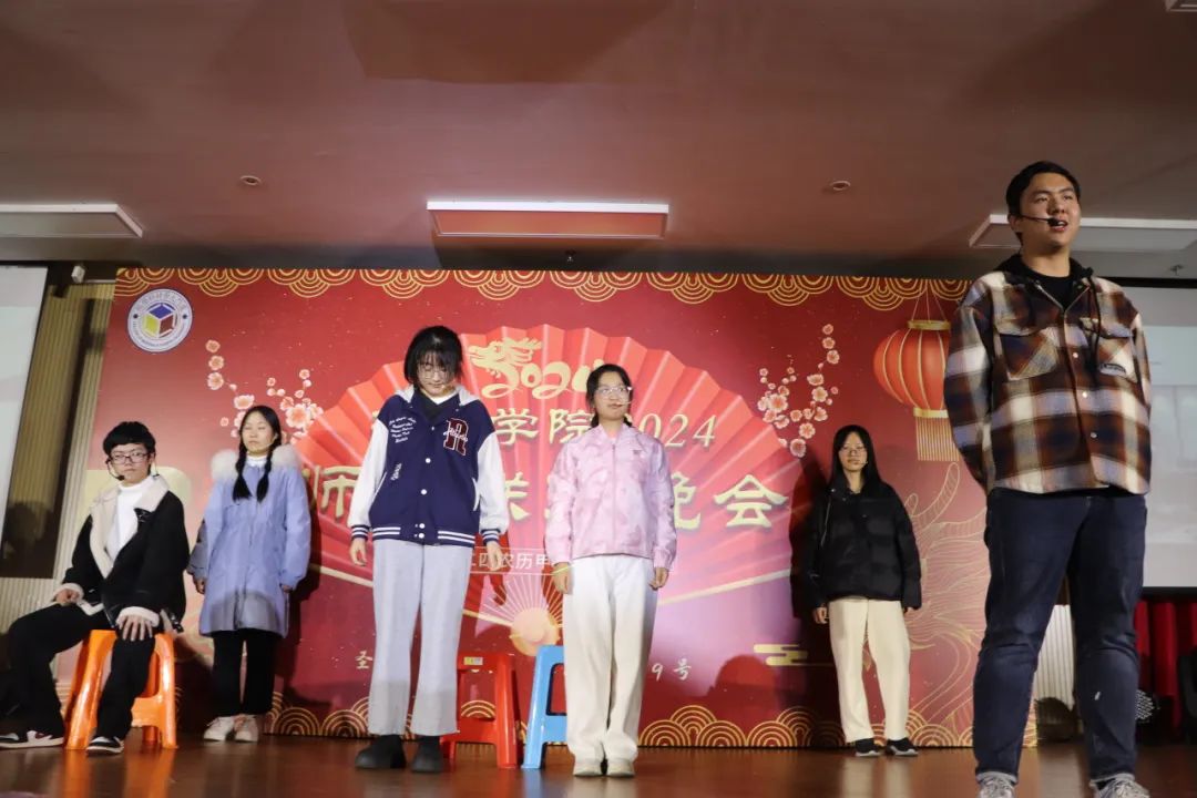 晚会现场还设置了动作接龙和猜歌游戏,同学们热情高涨,现场充满欢声笑语。