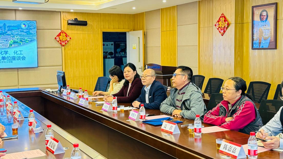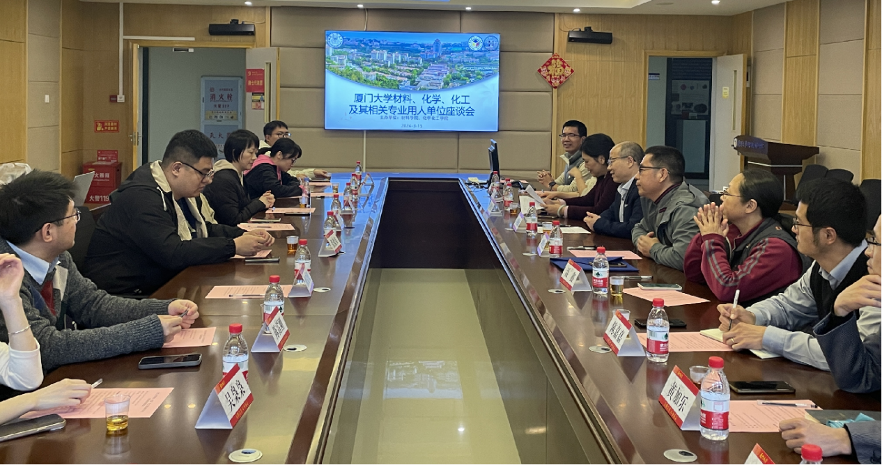 为持续改进教育教学,进一步提高人才培养质量,切实做好毕业生就业工作,更精准开展毕业生就业实习,分析当前形势,广泛了解用人单位对人才培养和教育教学方面的意见,研究部署2025届毕业生就业工作,共同推动毕业生高质量充分就业,材料学院和化学化工学院于3月15日在圣诺楼308会议室举办用人单位交流座谈会。来自美的集团中央研究院、青蛙王子(福建)婴童护理用品有限公司集团、福建森美达生物科技有限公司、芯联集成电路制造股份有限公司、浙江中成控股集团有限公司等企业代表应邀出席。材料学院党委副书记马兆海、黄兆君,化学化工学院党委副书记刘俊杰、聂鑫,化学系副主任陈嘉嘉、化工系副主任黄加乐、两院教学秘书以及辅导员参会。会议由黄兆君副书记主持。