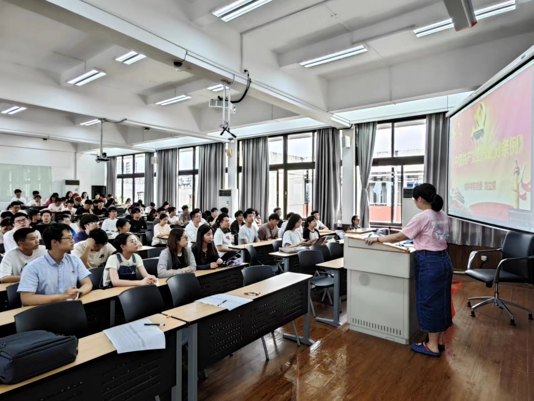 5月27日下午,材料学院在新楼201报告厅(主会场)组织2024年师生党员专题教学。学院党委书记刘立荣为全院师生党员专题解读《中国共产党纪律处分条例》。