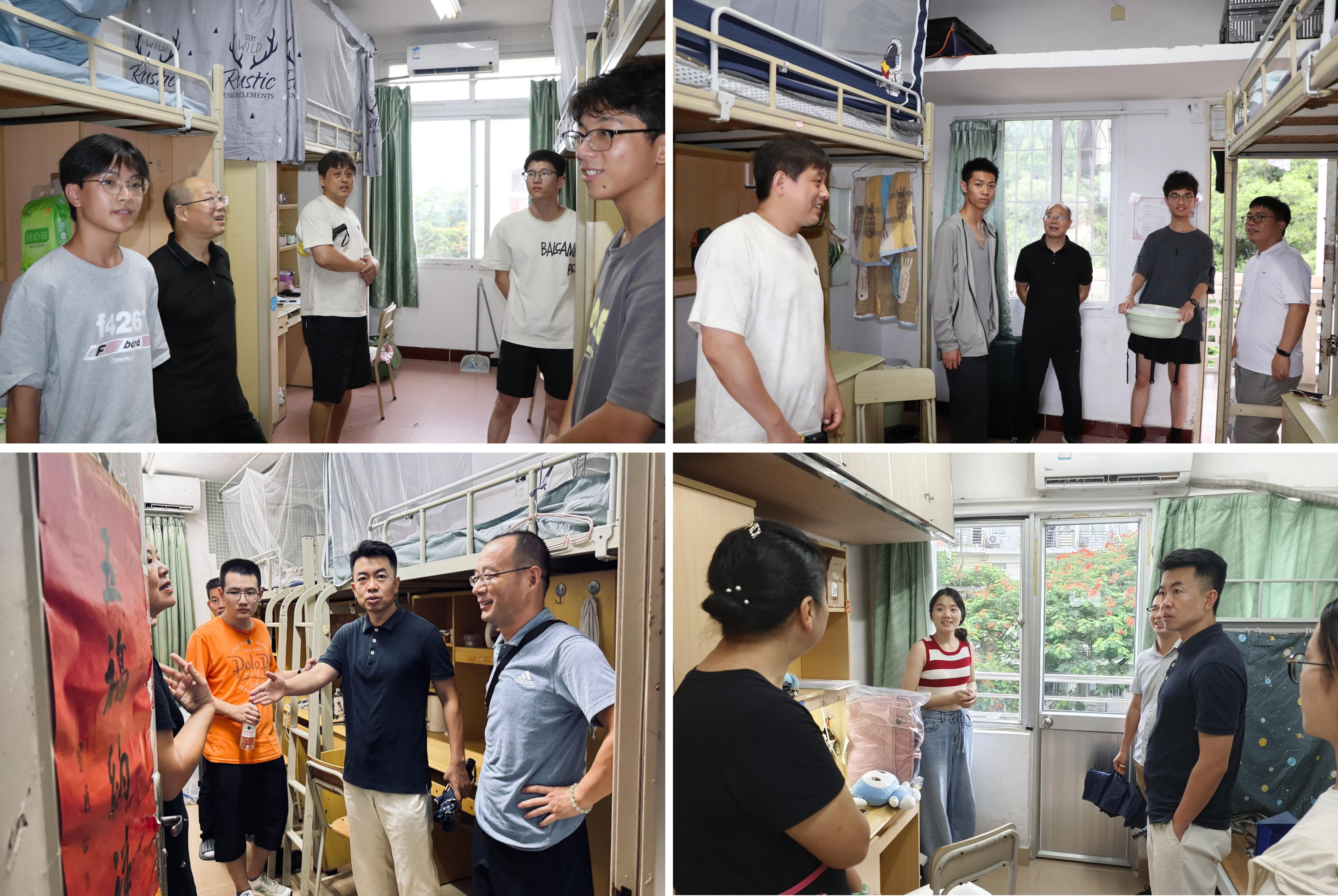 随后,材料学院党委副书记马兆海、黄兆君,副院长白华、李思维等一行分别前往走访本科和研究生宿舍,看望了解新生的入住情况。老师们悉心询问每位新生的家庭情况、饮食习惯、生活物资等各个方面的情况,与家长们交流,给予新生建议,鼓励同学们尽快适应学校环境,养成良好的生活和学习习惯。