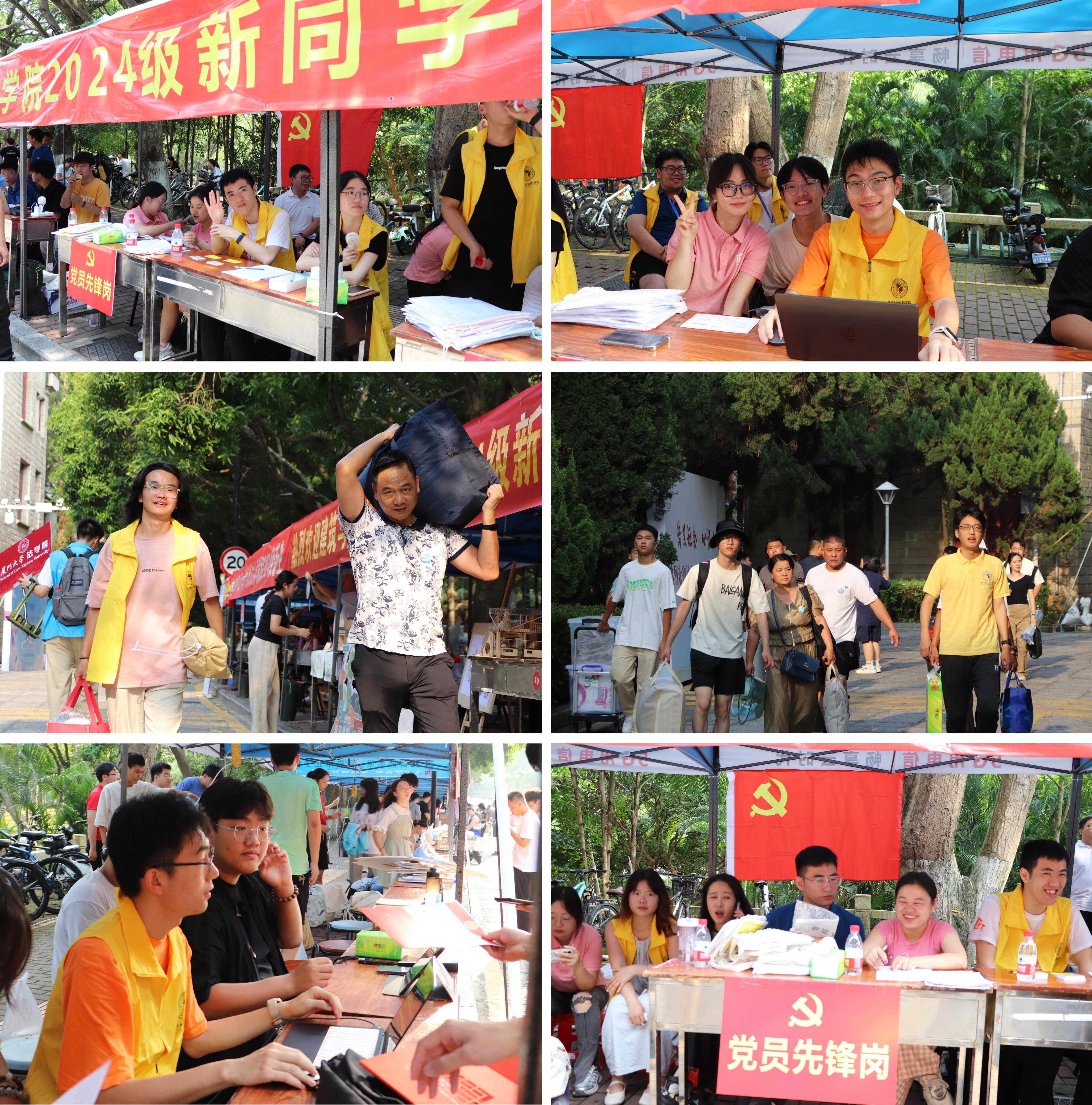 注册组的志愿者满怀热情与耐心,仔细核验每位新生的身份信息,发放新生大礼包,帮助新生完成报到,开启萌新们的大学生活。行李组的志愿者认真履职尽责,对于新生们难以搬运的行李,志愿者热情地伸出援手,确保每一位萌新的行李都能顺利随它的主人一起进入宿舍。