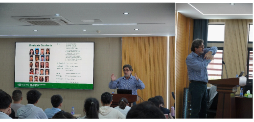 讲座伊始,王子明副教授对Nesic教授的到来表示热烈欢迎,并介绍Nesic教授的工作履历、研究兴趣以及主要成就。随后,Nesic教授生动形象且详细地展示了他所领导团队近几年在多方法、多尺度联合表征、验证和理解缓蚀剂分子表面吸附行为的研究进展。首先,他对美国俄亥俄大学的地理人文特色、校园环境以及其所在团队构成进行简单介绍;接着,Nesic教授对“电化学测量-线性极化电阻(LPR)技术,石英晶体微天平/耗散监测(QCM-D),原子力显微镜(AFM)和分子动力学模拟”等技术以及有机缓蚀剂吸附和脱附动力学的动态过程进行了详细讲解,该内容涵盖了测试原理、理论模型、适用条件等前沿知识,为在场师生展示了如何利用先进测试技术作为工具来探究腐蚀抑制的表界面微观机制。这不仅对同领域师生具有一定的启发性,而且激发更多学子对腐蚀科学的兴趣。