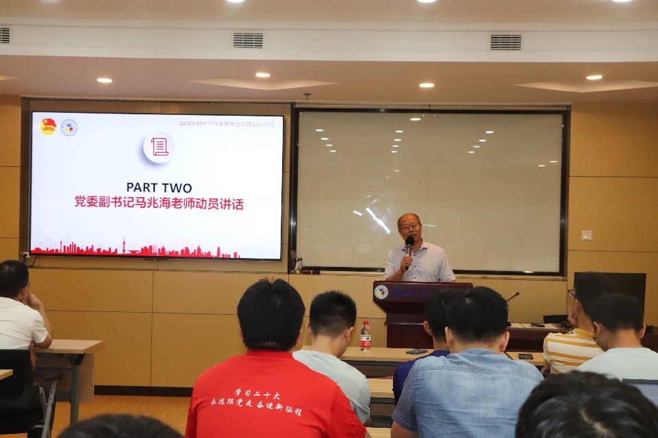 7月26日,材料学院举办2023年暑期社会实践动员暨出征仪式,学院党委副书记马兆海,团委书记石林伟,辅导员林锦昊以及各实践团队成员参加。