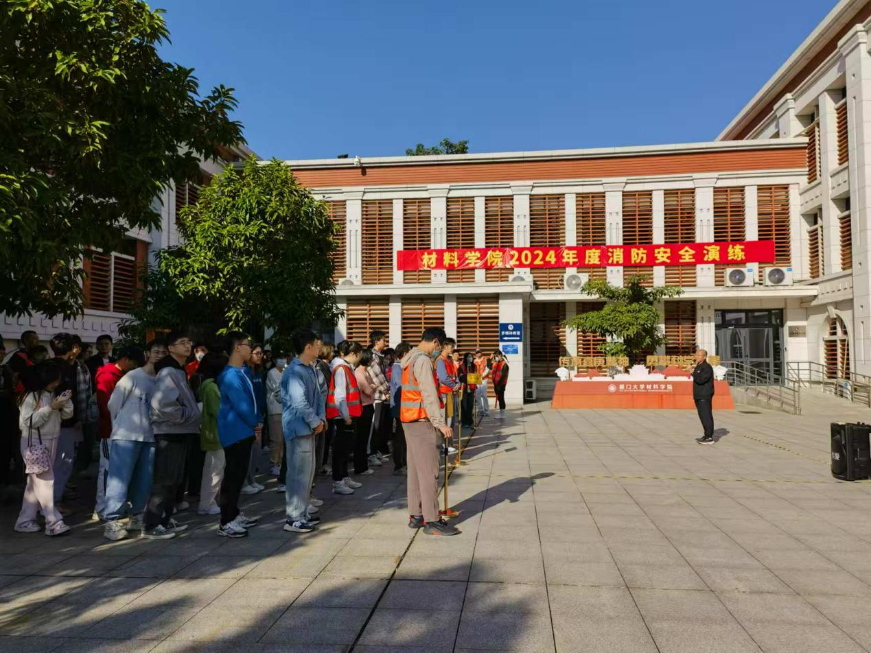 为提升实验室消防安全管理水平,增强师生应对突发火情的能力,创造平安校园,厦门大学材料学院于2024年11月27日上午在科学楼、凌峰楼、圣诺楼及特种实验室举行了火情疏散逃生演练。学校实验室与设备管理处、保卫处、物业及全院师生共同参与。