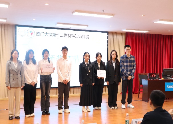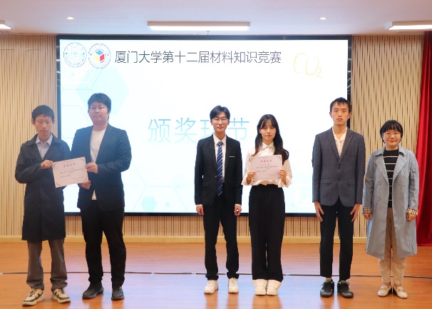 经过激烈的角逐,来自材料学院、化学化工学院的 “从容应对”、来自公共事务学院的“超能陆战队”发挥出色,在各自组别中力战群雄,赢得了一等奖,展现出了扎实的专业功底与大量的知识储备。比赛最后由姚荣迁老师进行发言总结,宣告着厦门大学第十二届材料知识竞赛圆满落下帷幕。