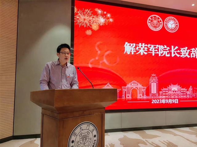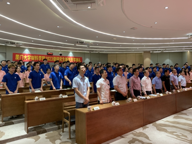 首先,解荣军院长致辞。他表示新材料产业是战略性、基础性产业,也是高技术竞争的关键领域,发展新材料也成为中国从制造大国转变为制造强国的必然要求,是中国摆脱关键材料与技术“卡脖子”困境的根本性举措。大家是学院事业进一步快速发展重要的有生力量,他向新生们提出三点期望:一是志存高远,勇担时代责任。厦大是教育和科研的国家队,大家作为国家队的一员,要看到我们国家和发达国家之间在各方面的差距以及我们所处的困境,应胸怀“国之大者”,勇担强国重任;二是传承文化,践行厦大精神。百年求真、求知的风雨历程,厦大始终践行“自强不息、止于至善”的校训,并形成了独特的“四种精神”,希望大家能从学习了解厦大的百年历史开始,从厦大精神中获取自信、树立信仰;三是求真力行,练就过硬本领。同学们既要学习科学知识也注意涵养人文品质。同时,他也提醒大家要居安思危,时刻保持学习之心,勇于将新技术新方法运用到科学研究中,要善于奇思妙想,方能豁然开朗、脱颖而出。