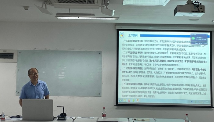 接着,辅导员林锦昊为班主任介绍了各年级的绩点分布情况,从专业、班级、宿舍、班委、学生就业等多个角度全面分析了各年级学风情况,提出了目前遇到的问题和解决方案,并向班主任介绍了本学期及今后的重点工作。