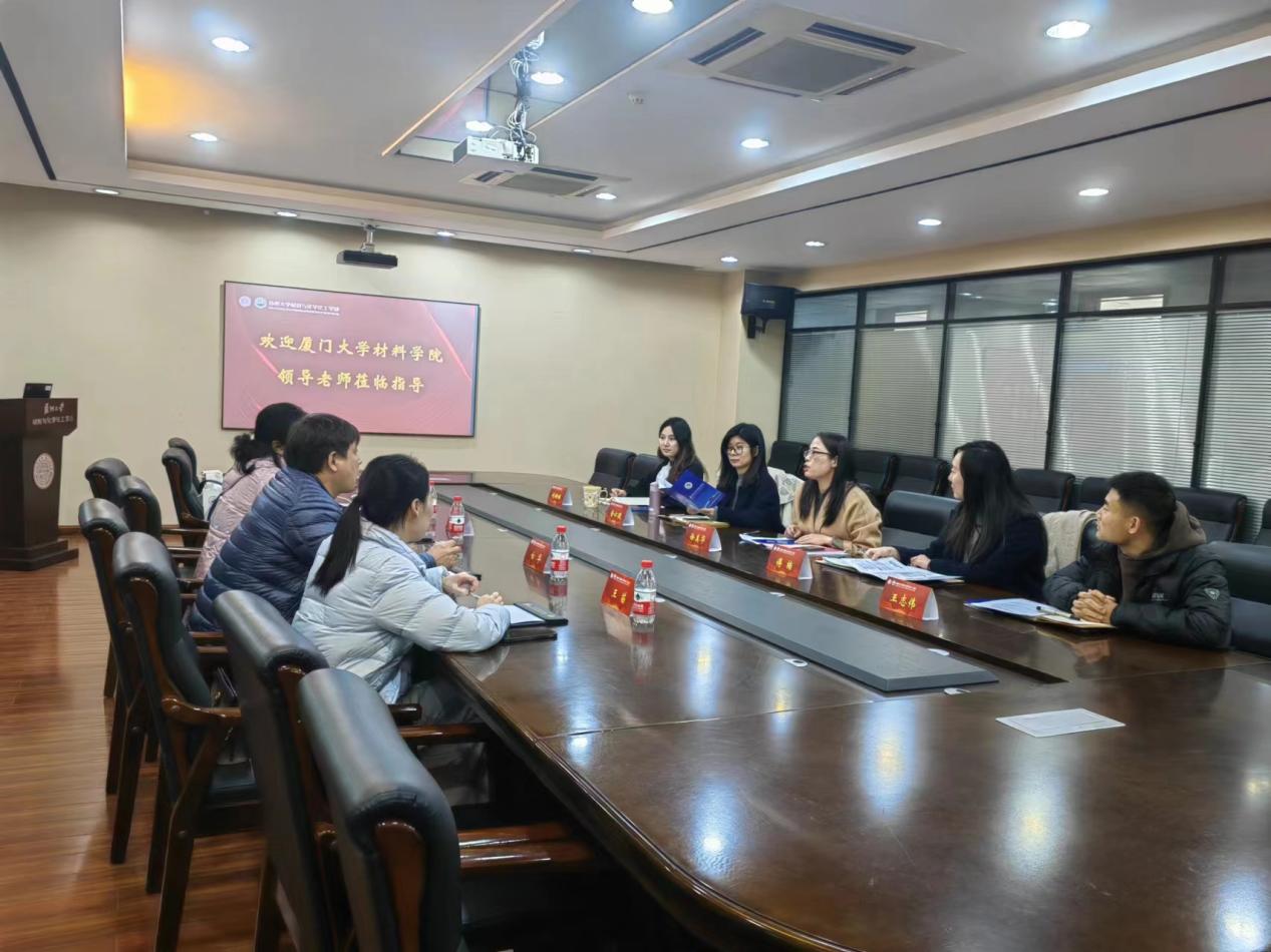 11月30日下午,黄兆君一行前往苏州大学材料与化学化工学部开展调研。座谈会上,苏州大学材料与化学化工学部分管学生工作的党委副书记徐美华首先就苏州大学材料与化学化工学部的基本情况做了介绍,相关工作人员从分管工作角度做分享,双方就师资队伍建设、人才引进;人才培养模式及课程体系设置;学生党建工作及三全育人举措;学风建设、毕业生就业及学生科创竞赛等方面进行深入交流。
