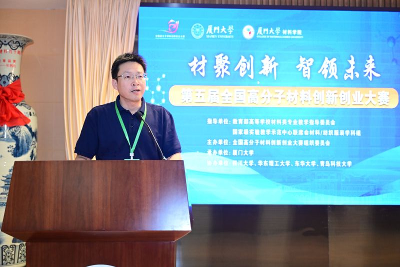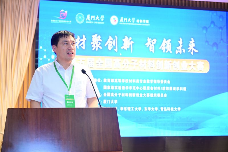 厦门大学校长助理谢兆雄在致辞中指出,本届大赛以"材聚创新,智领未来"为主题,不仅搭建了高分子材料领域产学研深度融合的交流平台,同时也进一步激发了青年学子的创新潜能,为我国材料学科的发展注入了新的活力。他强调,厦门大学将以此为契机,进一步深化教育教学改革,加强师资队伍建设,不断提升人才培养质量;进一步深化产学研融合,推动科技成果转化,不断为我国材料学科的发展贡献智慧力量。