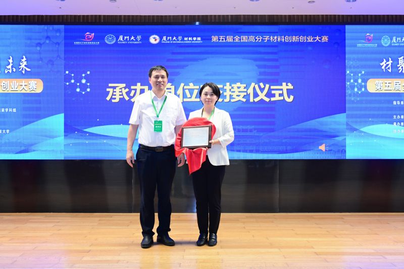 2026年第六届全国高分子材料创新创业大赛将在东华大学举办,厦门大学校长助理谢兆雄与东华大学材料科学与工程学院副院长成艳华共同完成承办单位交接仪式。成艳华副院长表示,东华大学将以“立足专业、聚焦前沿、开放融合”为宗旨,全力打造一届彰显时代精神的高水平赛事,通过整合国家级实验室与学科资源、依托成熟的双创培育体系、联动上海科创中心区位优势筑牢办赛根基,确保赛事公平、公正、公开,并拓展科教融汇价值。