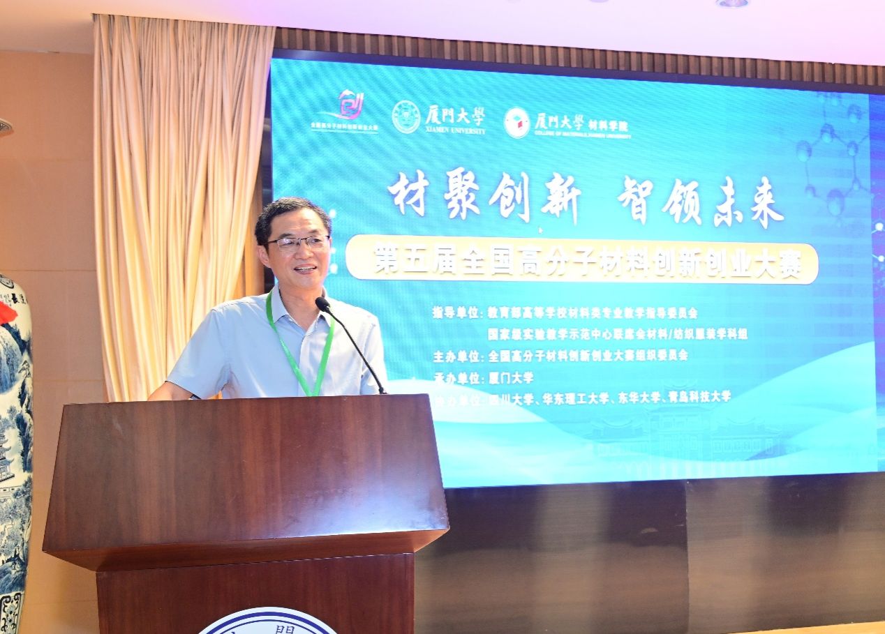 为深入贯彻全国教育大会精神,推动创新创业教育融入高校人才培养全过程,促进高分子材料及其相关行业领域的交流与合作,引导和激励学生将所学知识与经济社会发展紧密结合,培养具有创新思维和创业潜力的新时代新人,促进大学生科技成果转化,实现以创新引领创业,以创业带动就业。7月12日,由教育部高等学校材料类专业教学指导委员会指导,全国高分子材料创新创业大赛竞赛委员会主办,厦门大学承办,四川大学、华东理工大学、东华大学、青岛科技大学协办的第五届全国高分子材料创新创业大赛决赛在我校举办,四川大学党委常委、副校长赵长生,厦门大学校长助理谢兆雄出席大赛相关活动。