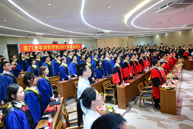 最后,厦门大学材料学院2023届毕业典礼在全场齐唱厦门大学校歌中圆满结束。