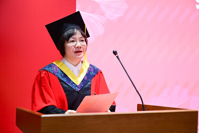 随后,许一婷教授作为教师代表发言。许老师叮嘱毕业生一要有理想抱负,学会团结协作,因为理想是灯,可以助人远行,团结才能更适应当下,因为一个人走得快,但一群人能够走得远;二要脚踏实地,坚持终身学习,只有永不停止、精益求精的学习才能以“学习不变”应“时代万变”;三要学会关心,平衡工作生活,希望大家关心国家、社会、他人、自然等等,多在网络之外,常常见面,常常有关心。