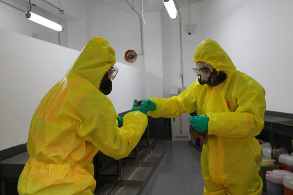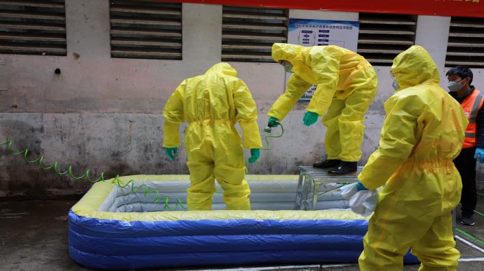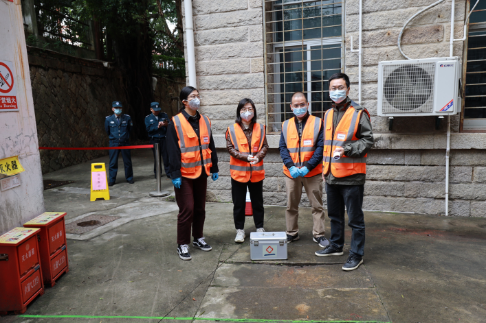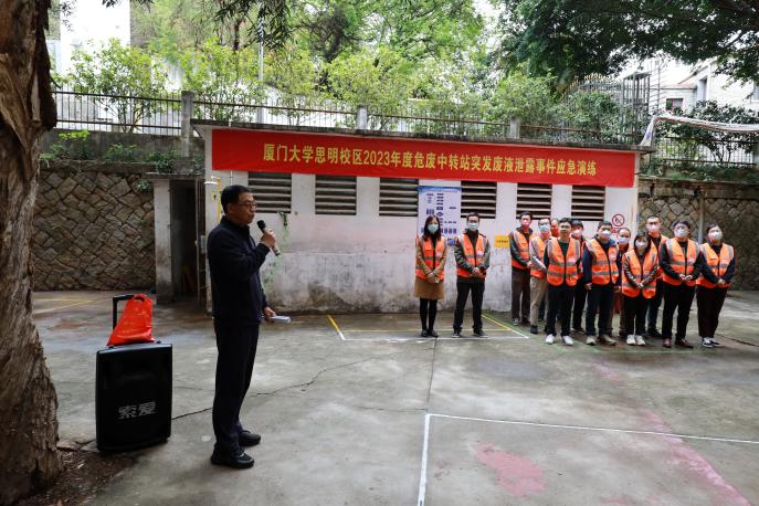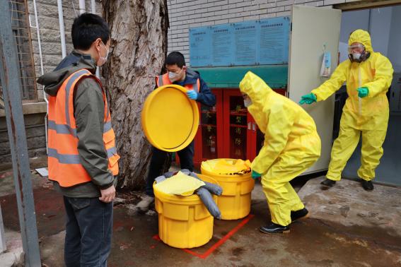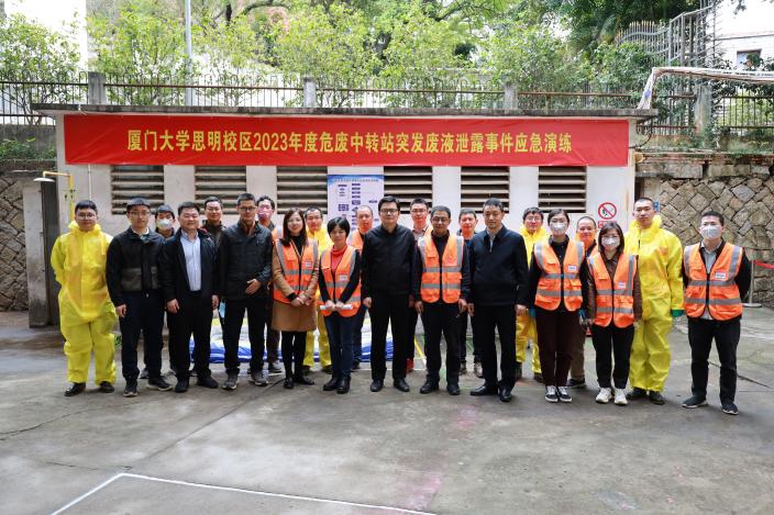 为认真贯彻执行国家环保法律法规,确保我校发生突发环境事件后能有效地组织抢险和救援,建立健全厦门大学思明校区突发环境事件应急体系,提高本校突发环境事件的预防和处置能力。学校于3月28日在我院科学楼危废中转站开展“厦门大学思明校区2023年度危废中转站突发废液泄漏事件应急演练”。