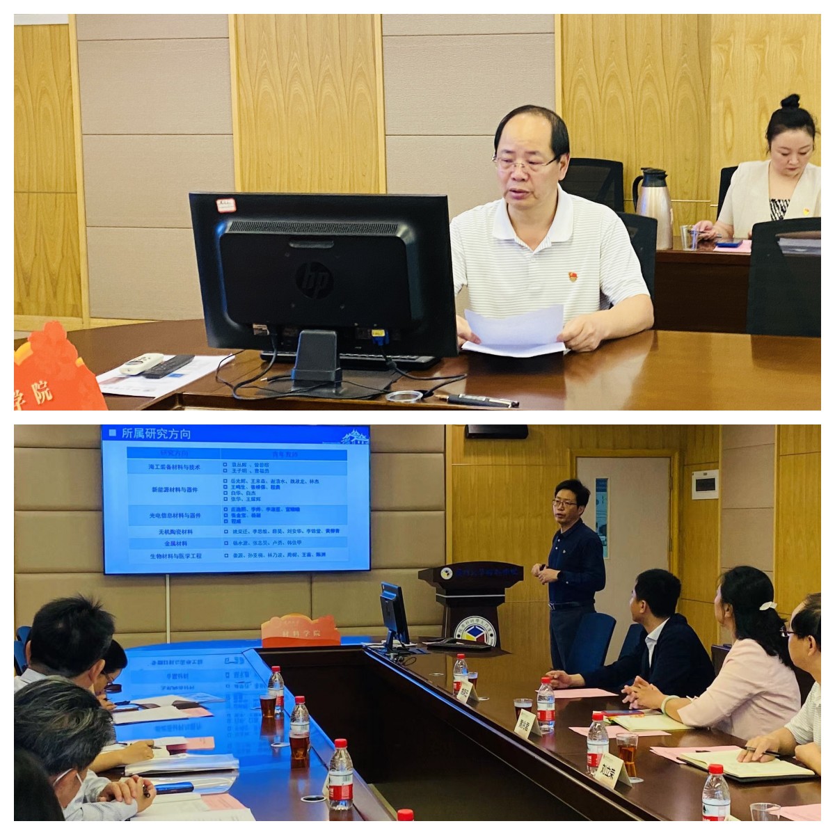刘立荣书记向检查组汇报2022年度材料学院党委全面从严治党主体责任落实情况,分别从党政合力,履职尽责、齐抓共管,落实整改、存在问题和不足三大方面进行汇报。随后解荣军院长以“优化青年科技人才成长环境”为主题汇报我院青年科技人才资源现况、助力青年科技人才成长举措、优化青年科技人才成长环境等建议。