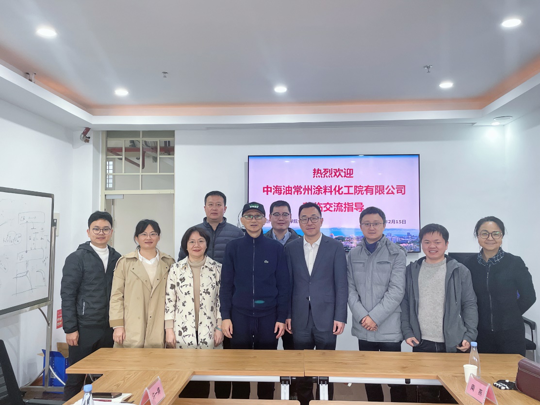 解荣军对中海油常州涂料化工院有限公司(以下简称“公司”)一行表示欢迎。他表示,党的二十大报告指出,坚持科技是第一生产力、人才是第一资源、创新是第一动力。充分激发科技创新动能,持续提升服务国家、地方的能力,打造原创技术策源地,是学院和公司共同的目标。同时,学院一直致力于提高人才培养质量,也希望和公司联合育人育才,回答好“培养什么人、怎样培养人”的问题。