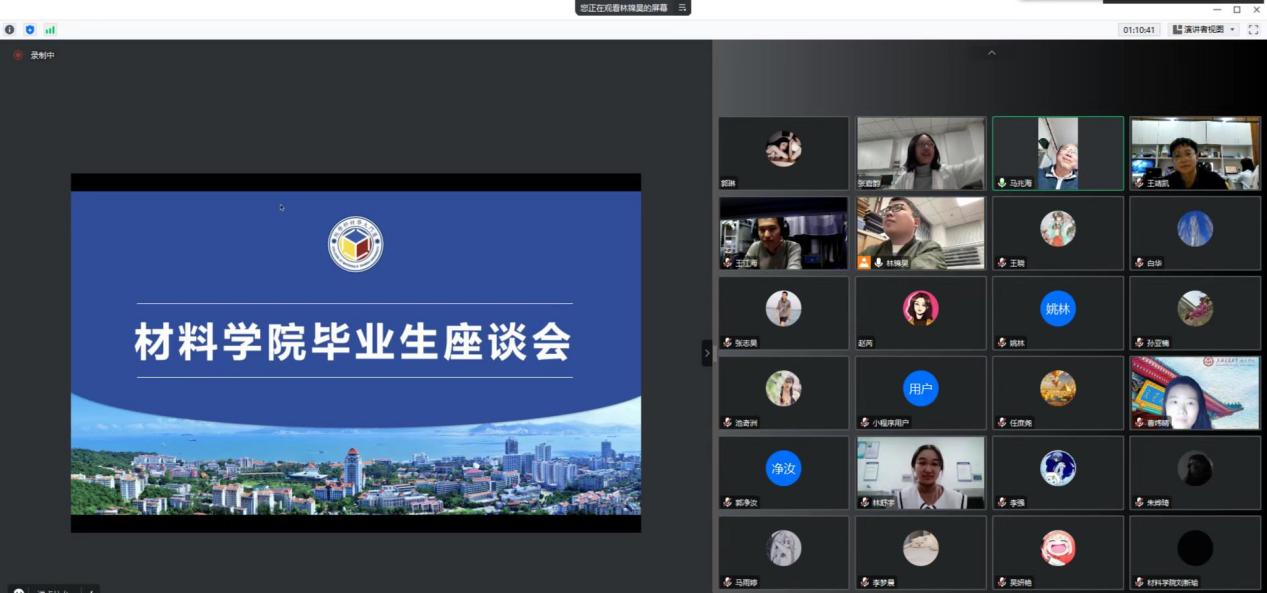 为了更好推进材料学院人才培养,全面提高人才培养能力,学院于3月2日召开毕业生线上座谈会。会议由学院党委副书记马兆海主持,副院长白华、生物材料系副主任(主持工作)孙亚楠、材料科学与工程系副主任张志昊、实验教学高级工程师刘新瑜、教学秘书及辅导员出席座谈。座谈会邀请近五年历届本科毕业生代表参加,并听取了毕业生对本科教育教学工作的意见和建议。