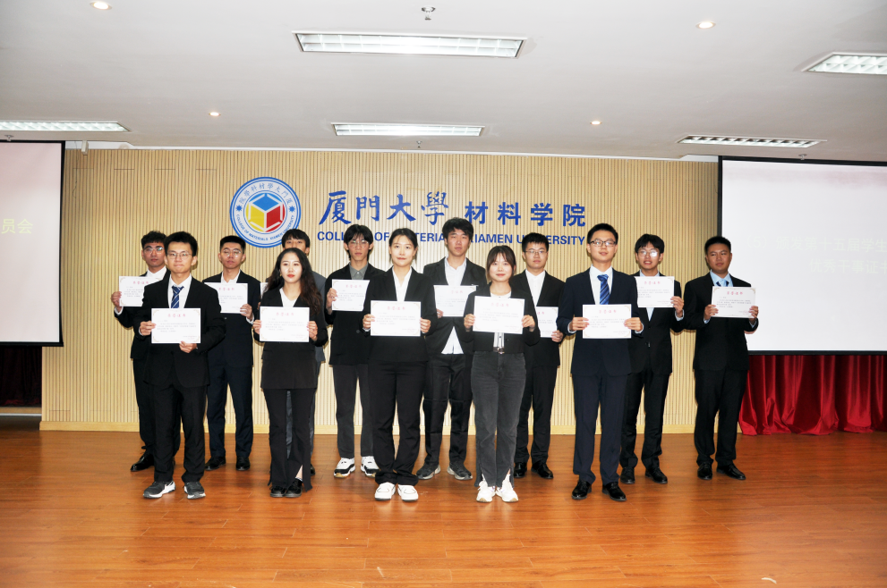 随后,石林伟、丁渡、林锦昊老师为第十五届学生委员会优秀干事颁发证书,马兆海老师为第十五届学生委员会委员颁发任职证明。全体代表听取并审议了材料学院第十五届学生委员会执行主席吴嘉坤代表第十五届学生委员会所做的工作报告,并通过无记名投票方式选举产生新一届学生委员会主席团与团总支部门负责人。