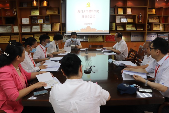 在新一届党的委员会第一次全体会议上,委员们讨论通过了委员会第一次全体会议选举办法,选举刘立荣同志为中共厦门大学材料学院委员会书记,马兆海、黄兆君同志为副书记。大会激励着全院师生昂扬斗志、踔厉奋发,凝心聚力推动学院高质量发展,以实际行动迎接党的二十大胜利召开。