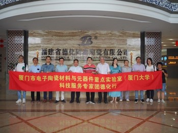 为了充分发挥厦门大学专家教授的专业技术优势和发挥重点实验室科技平台设备仪器的作用,促进高等学校与地方产业技术创新的深度合作,厦门大学材料学院厦门市电子陶瓷材料与元器件重点实验室应德化县人民政府、德化县科学技术局邀请,组织专家于2022年7月14日至16日赴泉州德化开展“科技服务专家团德化行”校企合作交流活动。