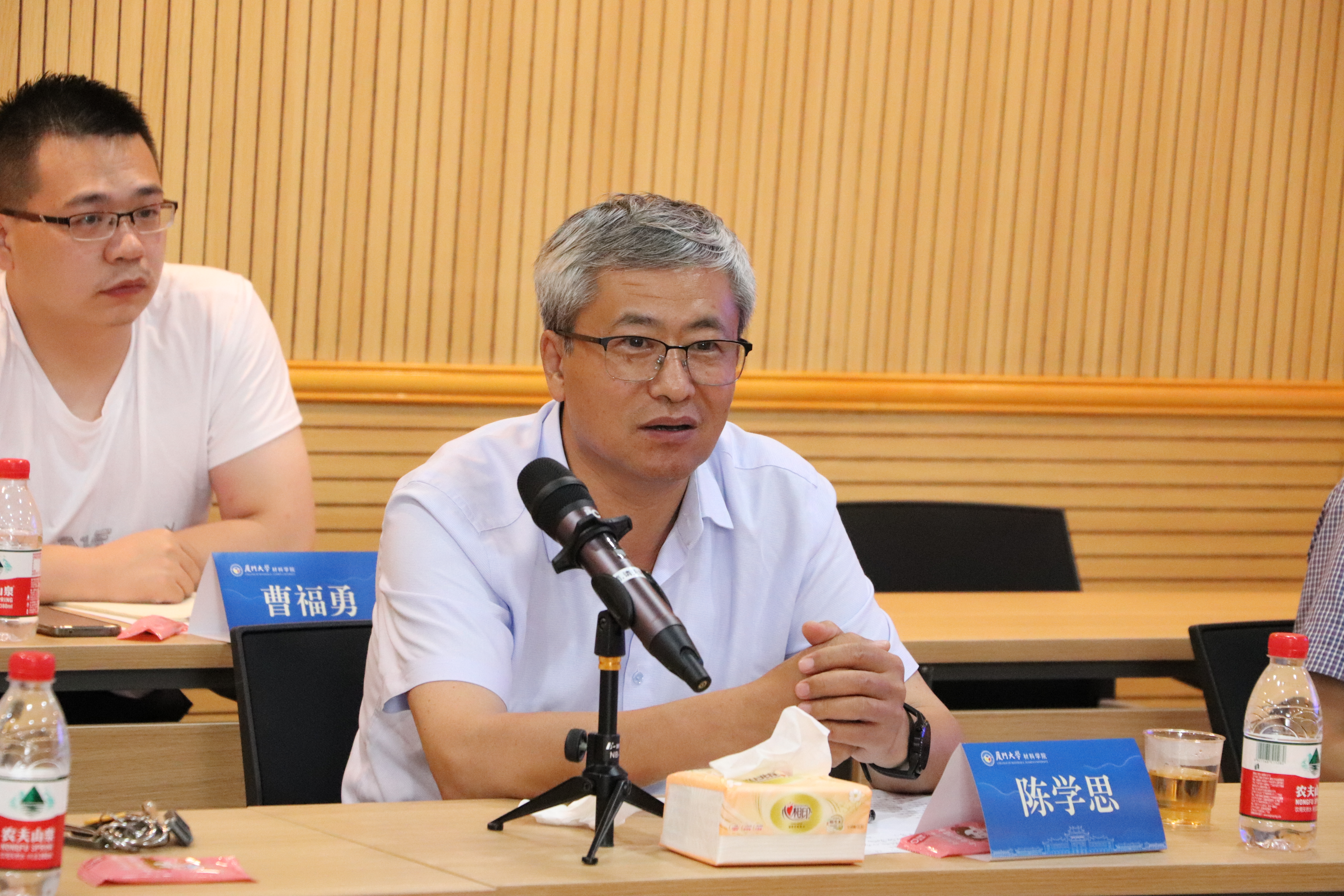 随后,与会的其他老师分别向陈学思院士介绍了自己的研究工作,就研究过程中的疑难问题请教了陈院士。陈院士一一为大家耐心解答,从发展和应用前景出发,进行了深入地分析,并在研究方向选择和优化上提出了详细的建议。他建议研究方向不宜太多、太杂,要能瞄准应用,形成自己的研究特色。