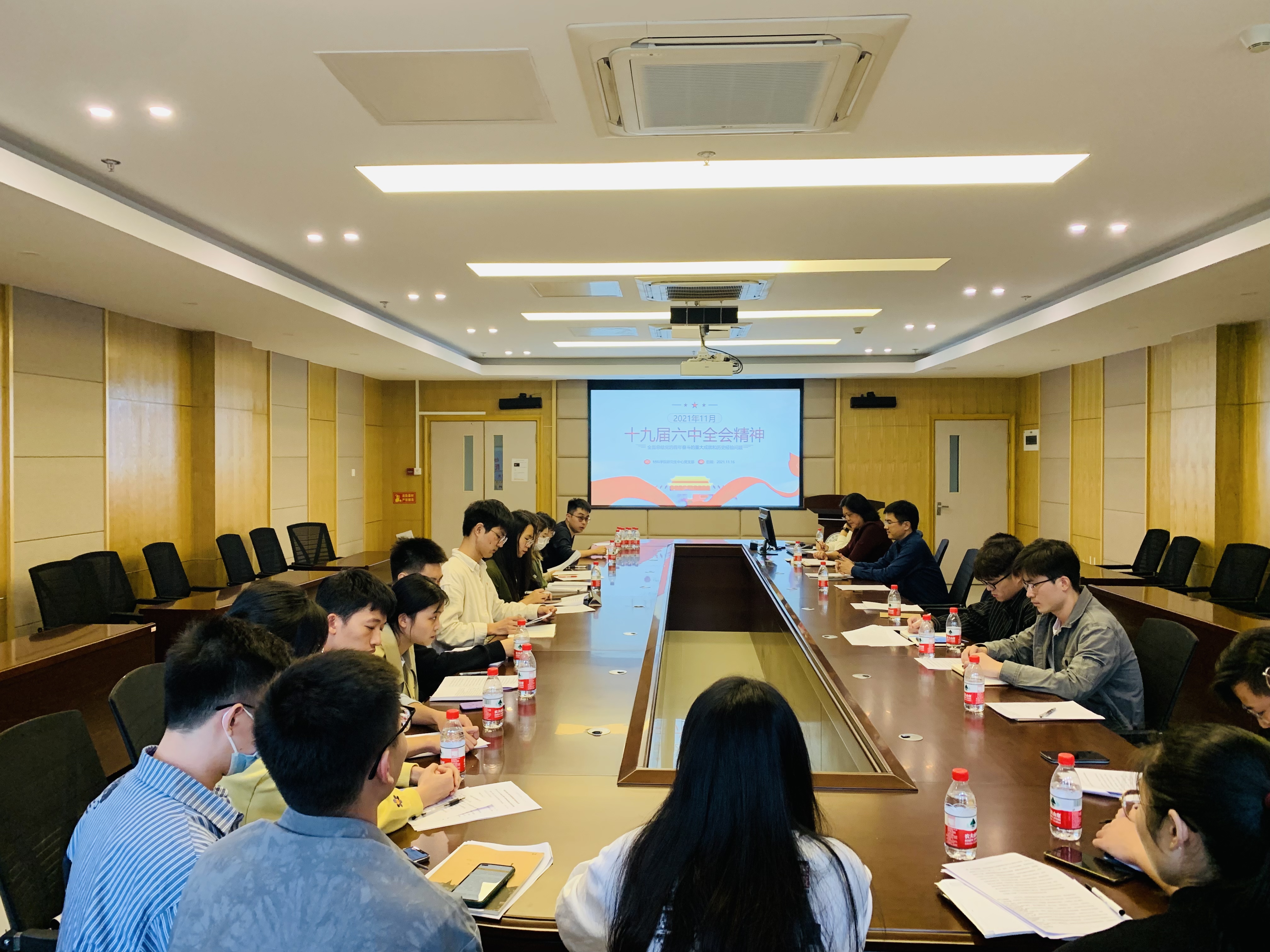 11月16日中午,材料学院研究生中心党支部在材料学院新楼308会议室组织召开学习党的十九届六中全会精神专题学习会,畅谈学习体会。材料学院党委副书记黄兆君老师、团委书记林明华老师、兼职辅导员、全体研究生党支部书记、研究生会骨干成员参加会议,会议由林明华主持。