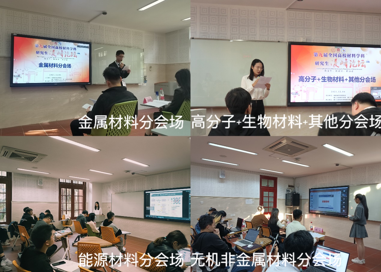 4日下午,论坛的主体活动——研究生口头报告与研讨会通过腾讯会议平台进行,报告与研讨会根据学科方向分为“无机非金属材料”、“金属材料”、“能源材料”、“高分子+生物+其他材料”四个类别五个分会场同步进行,共开展57余场口头报告。最终,根据口头报告与海报展示情况,通过评委现场打分以及参会代表互评,共评选出30名“优秀汇报奖”,其中,南京工业大沈寅麟、厦门大学周诗远、中国科学院金属研究所谈国旗、重庆大学钟诗宇、中国科学院上海硅酸盐研究所陈宝会5名同学分获一等奖。同时,南京工业大学沈寅麟等6名同学获得“优秀展报奖”。