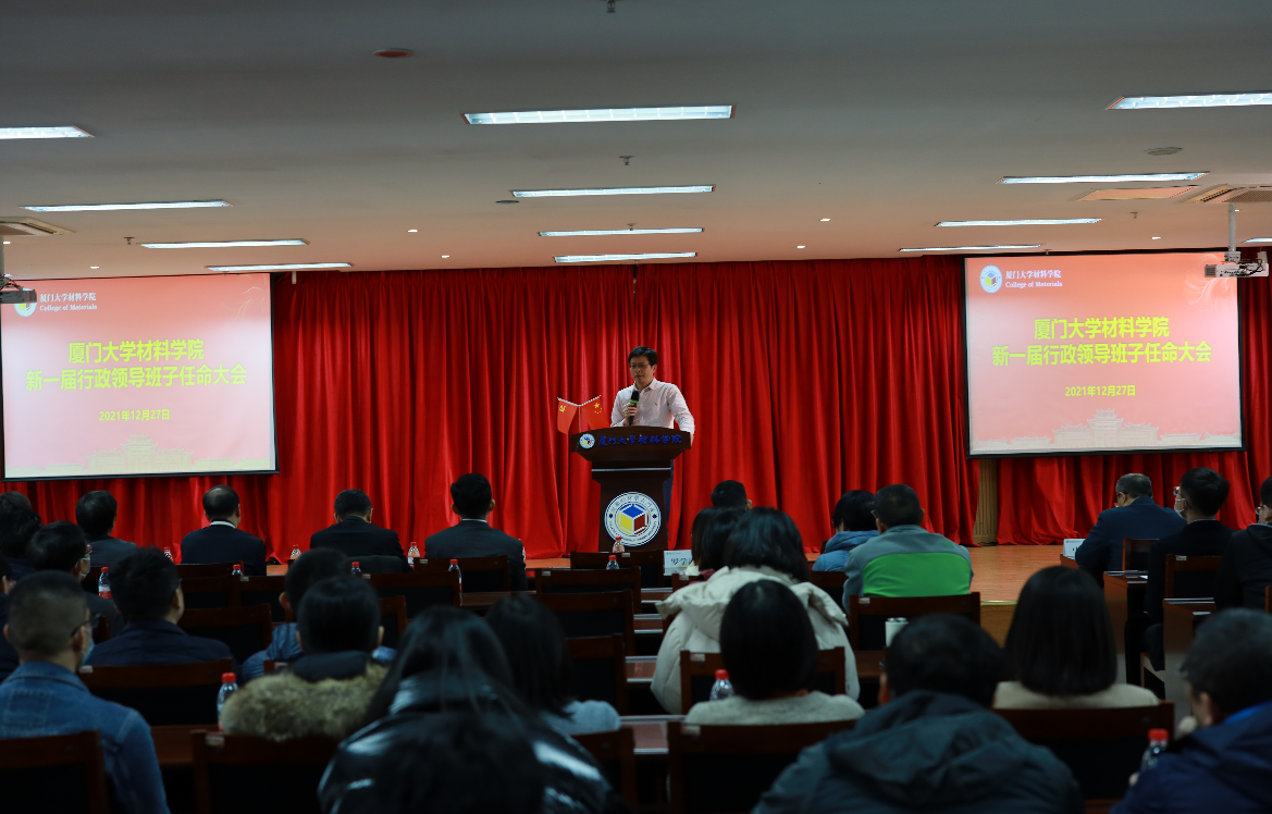 12月27日下午,材料学院新一届行政领导班子任命大会在圣诺楼201会议室召开。校党委副书记、纪委书记全海,校党委常委、组织部部长、统战部部长孙理出席会议,全院教职员工参加会议。会议由孙理部长主持。