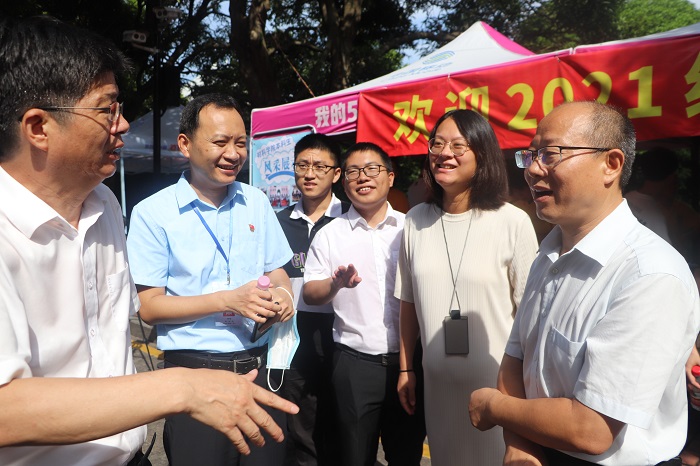 学校与学院领导对此次迎新工作给予了高度重视。院党委副书记马兆海等学工组老师早早来到注册点,现场指导迎新工作、关切迎新工作者们,确保了迎新工作的顺利展开。校党委副书记徐进功,学生工作部(处)部(处)长李峰等领导莅临学院迎新注册点进行观察,与桁架前与新生合影留念。视察过程中,徐进功副书记与我院师生亲切交流,展现对材料学子的深切关心与鼓励。下午四时,院党委书记刘立荣,院党委副书记马兆海,2021级本科生新生班主任杨丽、陈洲、王苗,辅导员林锦昊,本科生学生会执行主席张嘉韵等来到宿舍,对2021级新生进行走访慰问。老师们悉心询问了每位新生的姓名以及住宿、饮食、生活物资等方面的情况,同时提出了许多尽快适应大学生活的中肯意见,鼓励同学们尽早适应学校环境,养成良好的生活、学习习惯,为同学们送去了关怀与温暖。