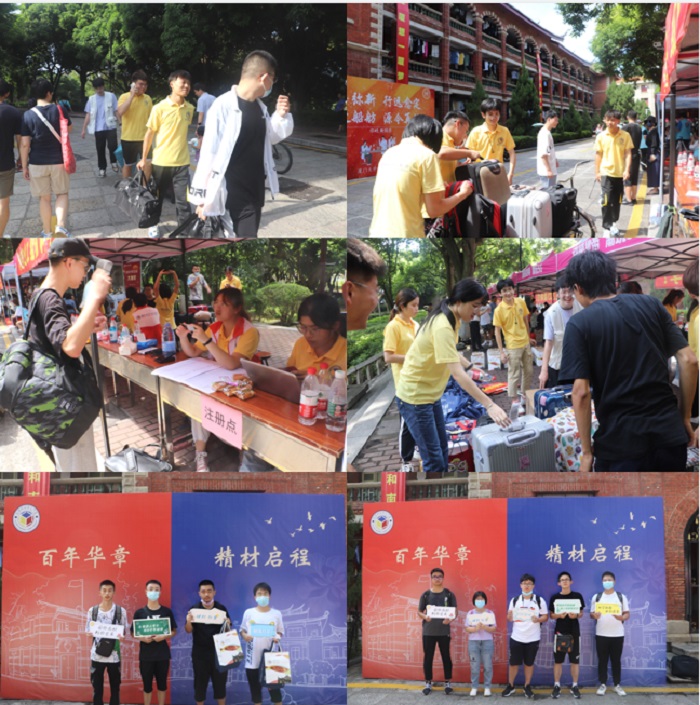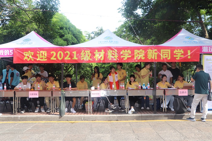 上午,伴随着第一位材料学院新“材子”的到来,迎新工作拉开序幕。在身着橙色志愿服的引导组志愿者带领下,新生陆续到达注册点,根据注册组志愿者指引完成报道流程。身着黄色院服的志愿者有序为新生办理入学手续,发放资料袋。在“百年华章,精材启程”的主题桁架下,2021级新生拿着“别出心材”、“因你有材,料你会来”、“材高八斗”等充分体现材料学院特色的标语牌合影留念,留下在材料学院学习道路上的第一个足迹。注册点“热烈欢迎2021级材料学院新同学”的醒目横幅包含着学院师生的热情与祝福。行李组的志愿者们也热情洋溢,用三轮车、行李搬运车满载来自五湖四海的新生们家的温暖。志愿者们真挚负责,各司其职,炽热的阳光依然没有灼伤他们的热情,充分展现出我院志愿者热心助人、传递正能量的风采,每一位新生在志愿者帮助下长舒的一口气,体现出我院“让每一位新生都能感受到材料学院大家庭温暖“的迎新宗旨。