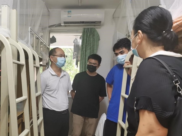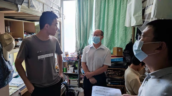 学院非常重视本次爱国卫生运动,在同学们积极响应号召、热情打扫宿舍卫生的同时,材料学院党委书记刘立荣、党委副书记马兆海、黄兆君、团委书记林明华、辅导员林锦昊于9月30日下午、晚上亲自走访各学生宿舍了解情况,与学生们积极互动,指导工作。