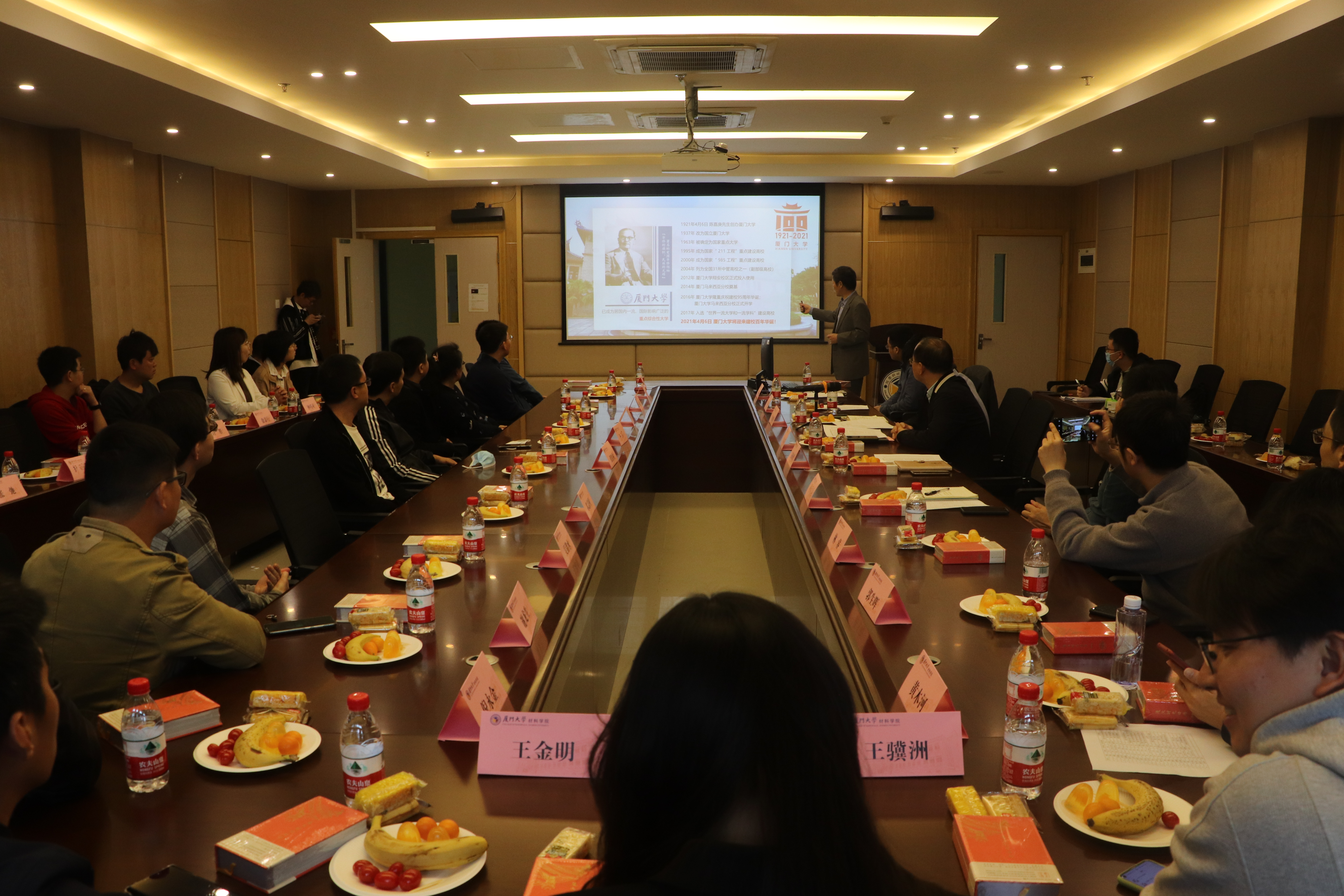 为迎接厦门大学百年华诞,更好地凝聚校友、服务校友,3月21日上午,材料学院在新楼308会议室召开自材料学科建系以来各年级院友联络人座谈会。材料学院30名院友联络人欢聚一堂,重温师生情,畅叙同学谊,共商母校百年校庆,学院党委书记刘立荣、院长彭栋梁、副院长解荣军、党委副书记马兆海、办公室主任肖祖法、团委书记林明华等老师参加了会议。