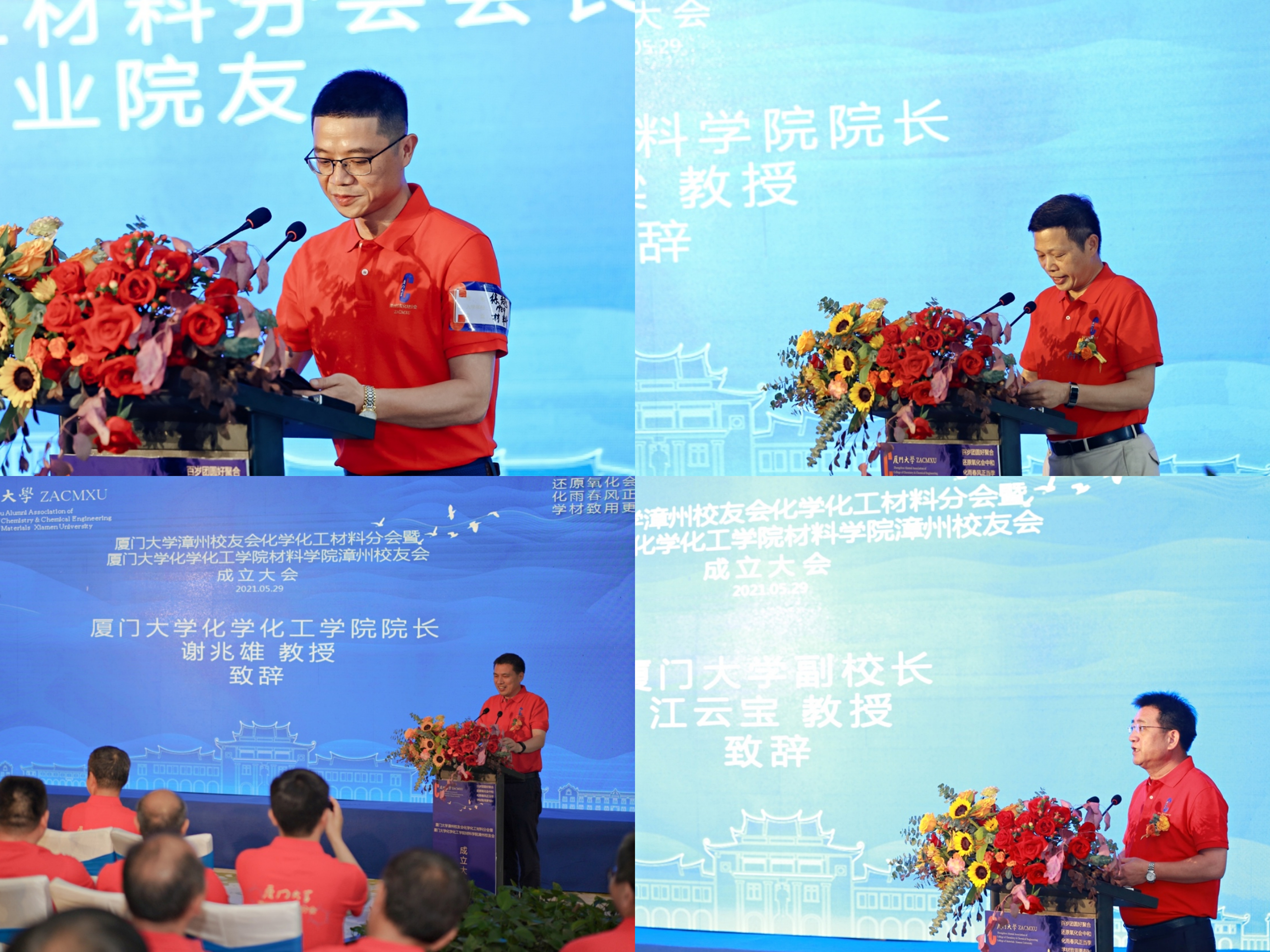 彭栋梁、谢兆雄、蔡津津、吴两同及江云宝等嘉宾代表依次上台致辞。嘉宾代表在热情洋溢的致辞中,都衷心地表示对成立“厦门大学漳州校友会化学化工材料分会”的诚挚祝贺,也希望各界漳州院友始终秉承厦门大学的校训、保持发扬两院的优良传统,砥砺前行,共创新辉煌。