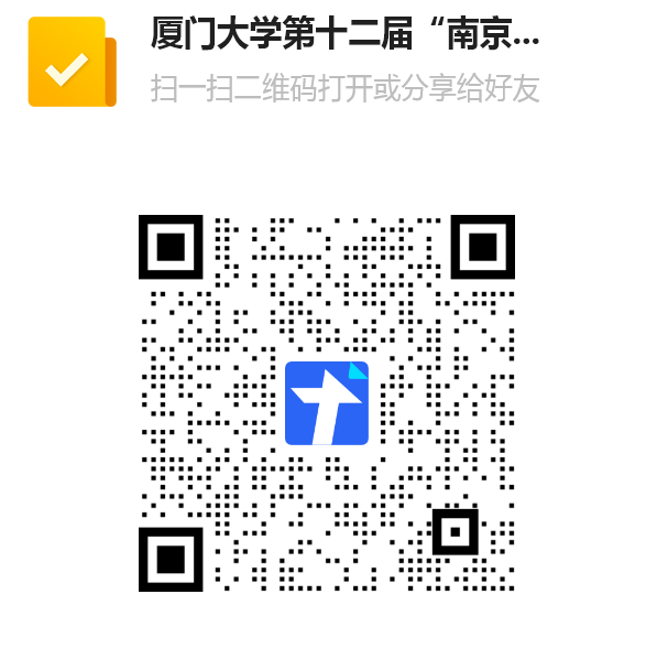 厦门大学十二届“南京博蕴通”全国高校材料学科研究生凌峰论坛口头汇报入围名单.pdf,组委会也会安排志愿者做电话和短信提醒。请确定参会人员11月17日中午12:00前扫描下面二维码填写信息收集表,用于入校报备和数字校园卡申请。
