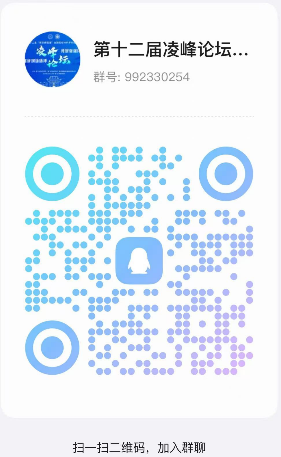 同时,确定参会人员请于11月17日中午12:00之前加入QQ群:992330254。验证信息:凌峰论坛+学校+姓名,进群后请立即修改群昵称为:学校+姓名。