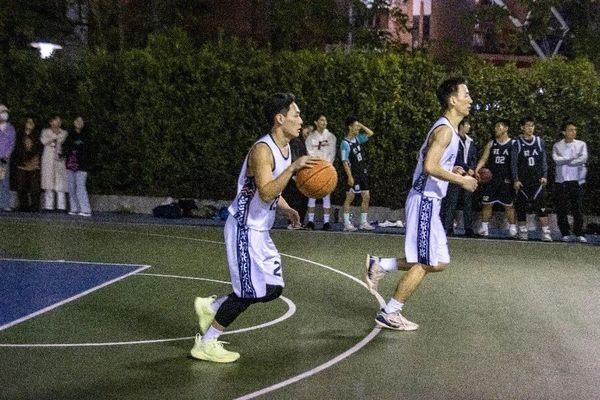 11月26日,材料学院代表队迎来出线与否的关键一战,与已取得两连胜的共事社人联队进行本组的最终对决。虽然赛前材料学院因伤缺阵多名队员,但全队上下展现出必胜的心态,势要拿下本场胜利。开局双方互有领先,比分胶着,材料学院代表队23号选手付虎成以一记漂亮的中投结束了上半场的比赛。下半场回来,社人学院代表队率先发难,不断完成抢断得分,材料学院代表队及时调整心态、战术,稳扎稳打,不到最后一刻决不放弃的信念,不断紧追比分,但由于阵容不齐及体力影响,最后材料学院男篮代表队以43:54憾负公事社人联队。