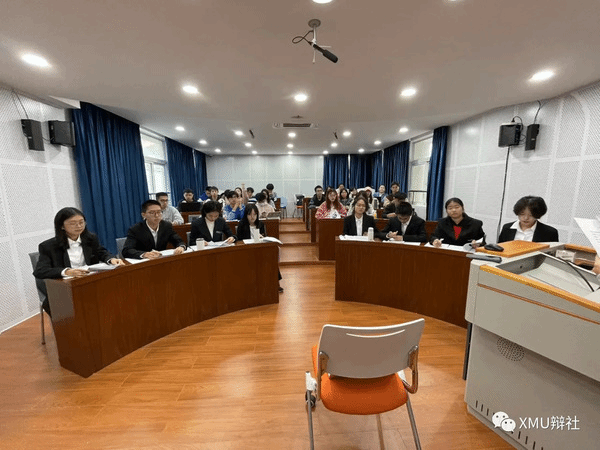 “2023新生辩论赛”四分之一决赛现场,材料学院与公共事务管理学院辩论队围绕“饭圈刷数据打榜对娱乐业发展弊大于利/利大于弊'进行激烈地辩论。