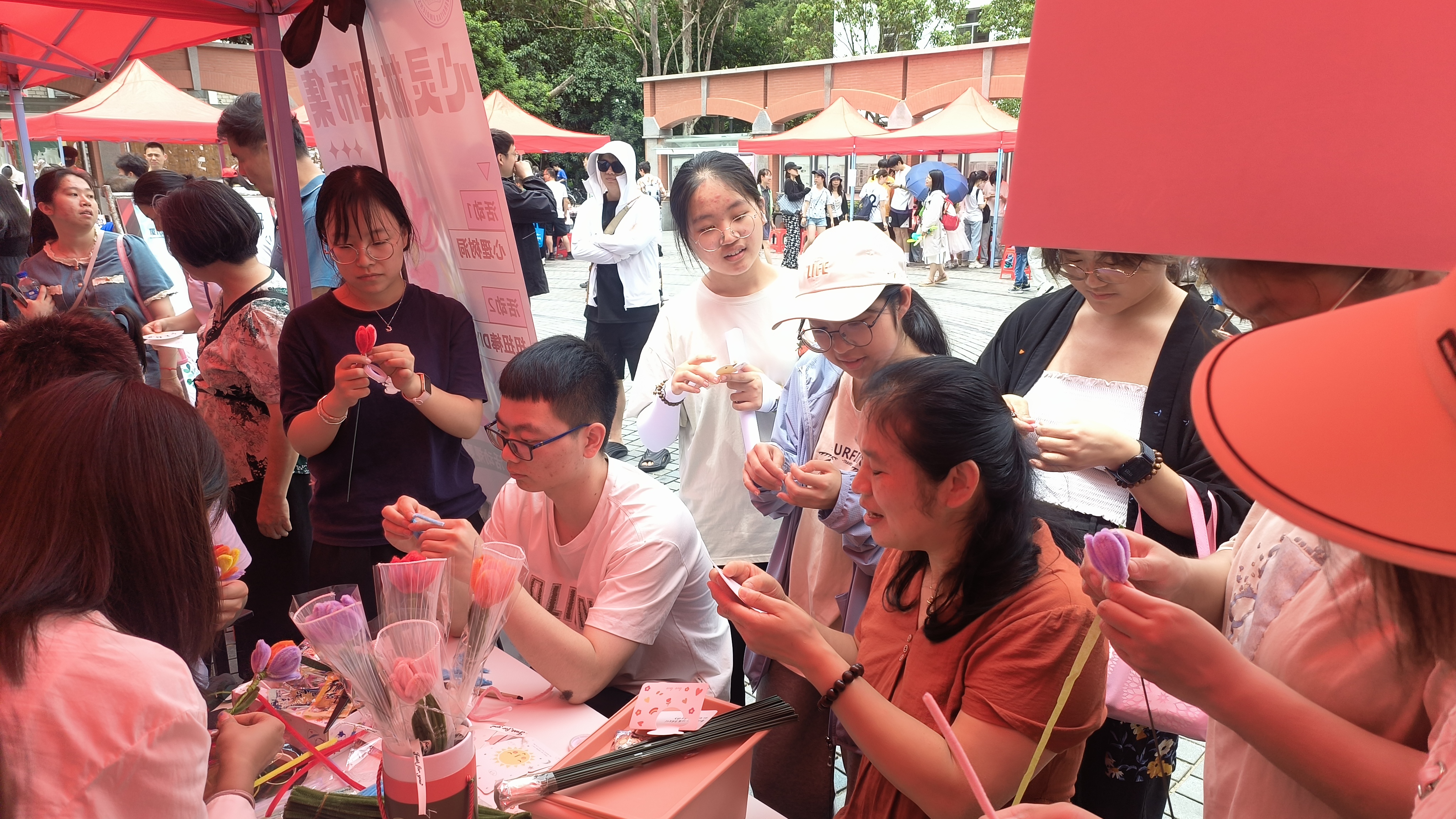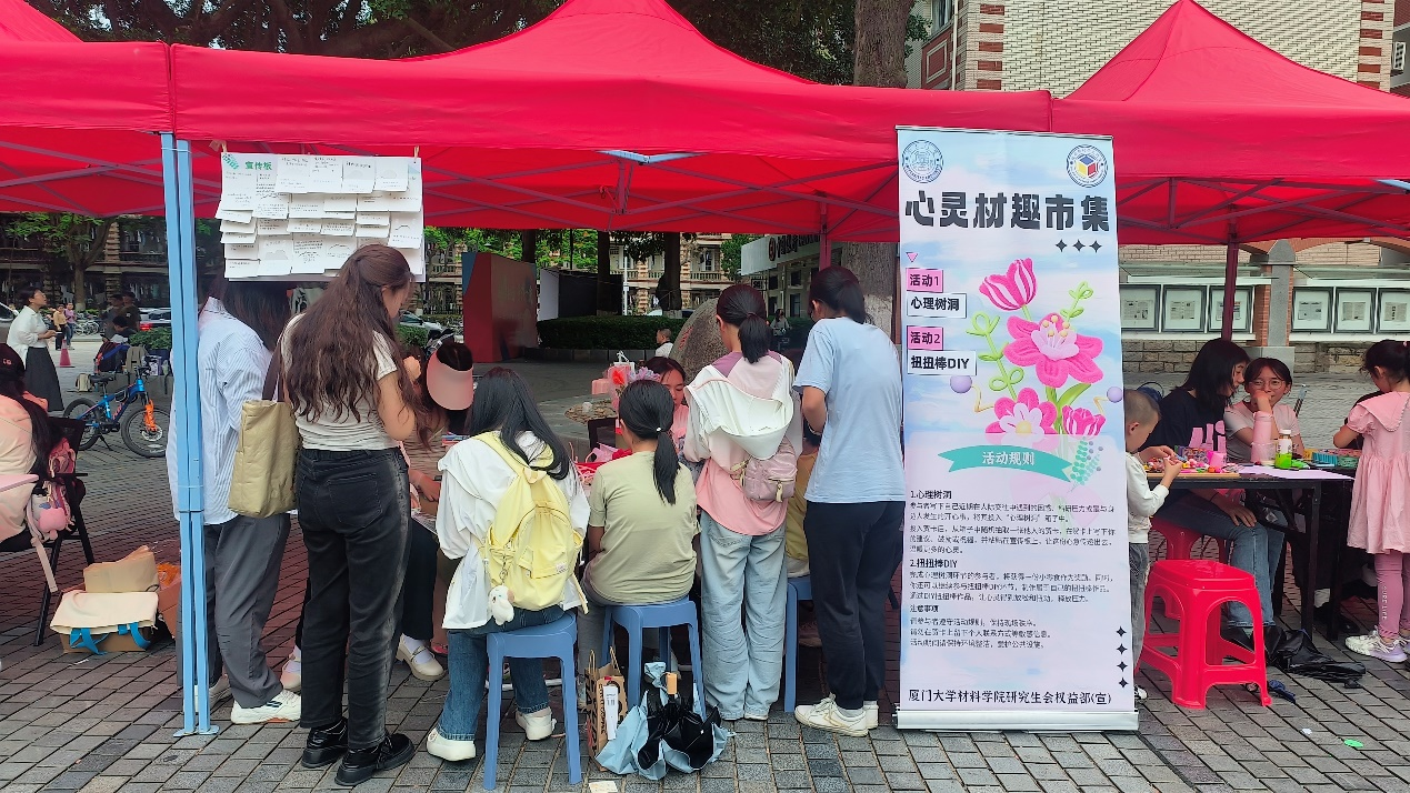 五月的校园,阳光明媚,微风拂面。在这个充满生机的季节里,学校525心理健康节线下活动如期举行。本次活动我院参与并特别设置了心灵材趣市集互动游戏摊位:心理树洞和扭扭棒DIY,吸引了众多参与者,共同分享心灵的故事,释放生活的压力。