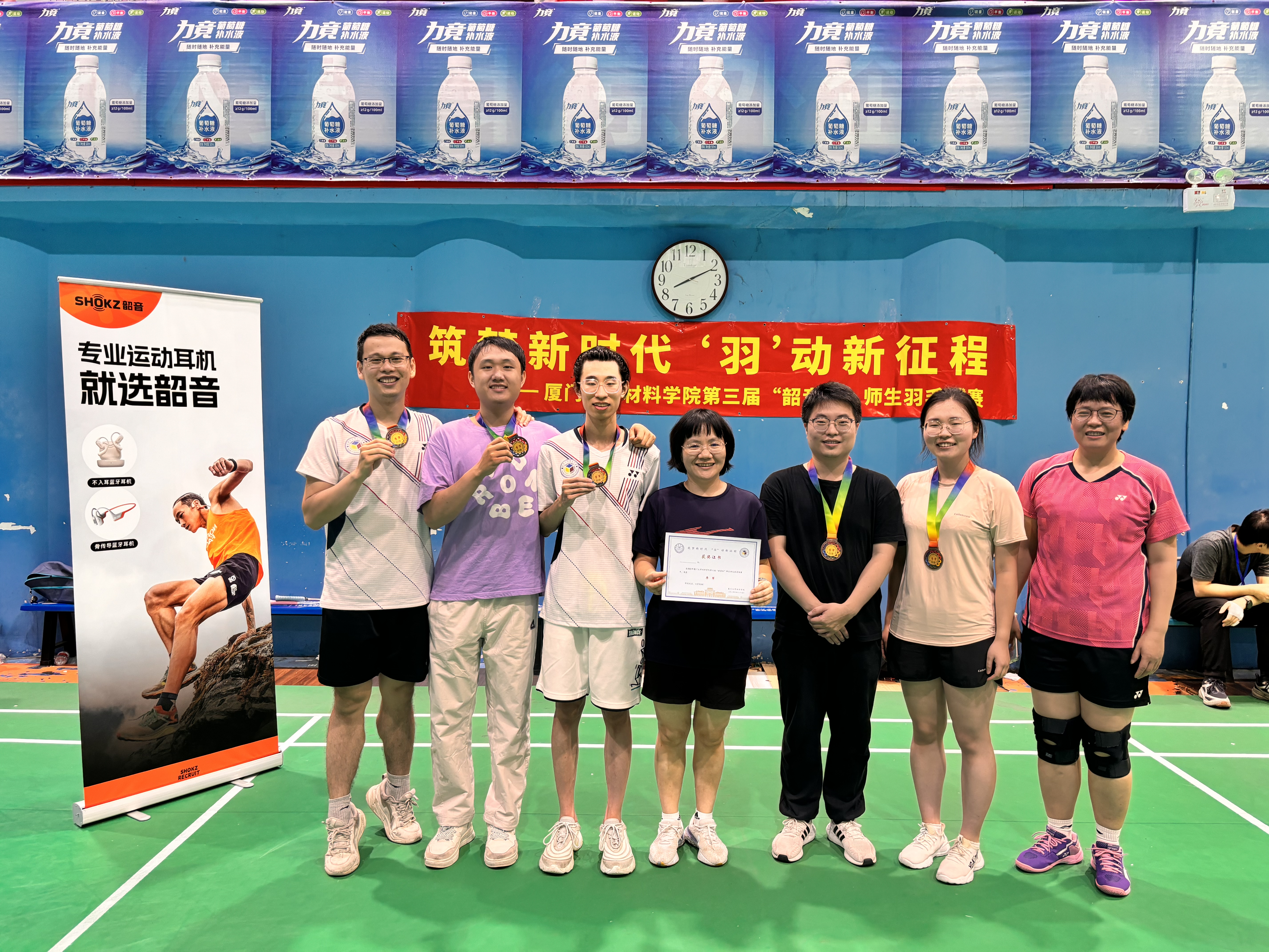 经过一下午的激烈角逐,“韶音杯”材料学院第三届师生羽毛球赛在各位运动员与工作人员的汗水中落下了帷幕。“大队”以优异的总成绩获得了混合团体赛的冠军,这一支主要由本科生组成的队伍在一众研究生队伍中脱颖而出!“彭-白精英队”荣获混合团体赛亚军,“再创辉煌队”荣获混合团体赛季军!趣味赛的前四名由“带我赢队”、“iNuo粉丝队”、“重在参与队”、“你的生活我的梦队”分别获得。