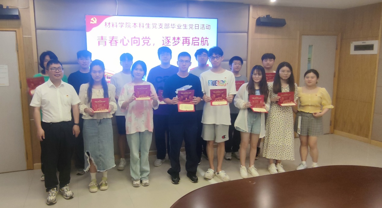 为推动党纪学习教育走深走实,增强毕业生党员的纪律意识,引导毕业生党员充分发挥先锋模范作用,坚定理想信念,强化责任担当。6月13日,材料学院本科生党支部在圣诺楼308开展“青春心向党,逐梦再启航”毕业生党日活动。