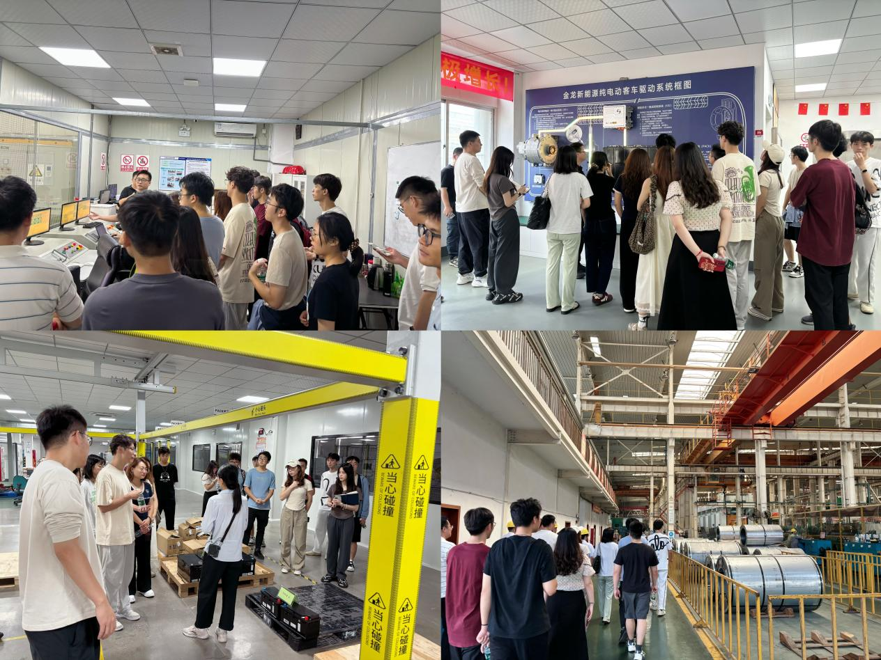 在厦门金龙汽车新能源科技有限公司,学校师生参观试验中心、展示区、K01车间以及PACK车间,直观了解公司整车动力域控制器、商用车动力电池系统、多合一集成控制系统、电桥驱动控制系统等一系列新能源汽车关键零部件的生产;在厦门金龙汽车车身有限公司,在车间主任的带领下,学校师生参观了冲压、焊装车间、精密结构件车间,近距离感受了先进的模具及夹检具的制造、检测设备和冲压自动化产线。
