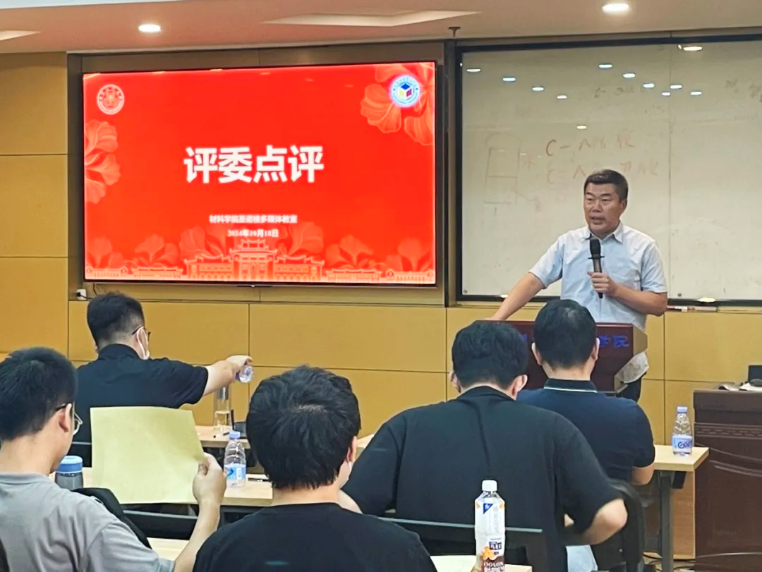 姜源教授作为评委代表点评,他对本次论坛的成功举办表示祝贺,对所有分享汇报者的辛勤付出表示肯定。他勉励广大研究生们要珍惜就在身边的交流机会,多与老师和师兄师姐交流,积极寻找解决问题的方式,同时不断提升自己的科研能力,从实际应用角度出发开展科研工作。他鼓励“跨界”,材料学科与物理学、化学、生物学等领域密切相关,创新往往需要跨学科的知识融合。通过与其他学科的合作,材料科学的研究能够产生更为广泛的影响,推动科学的整体进步。