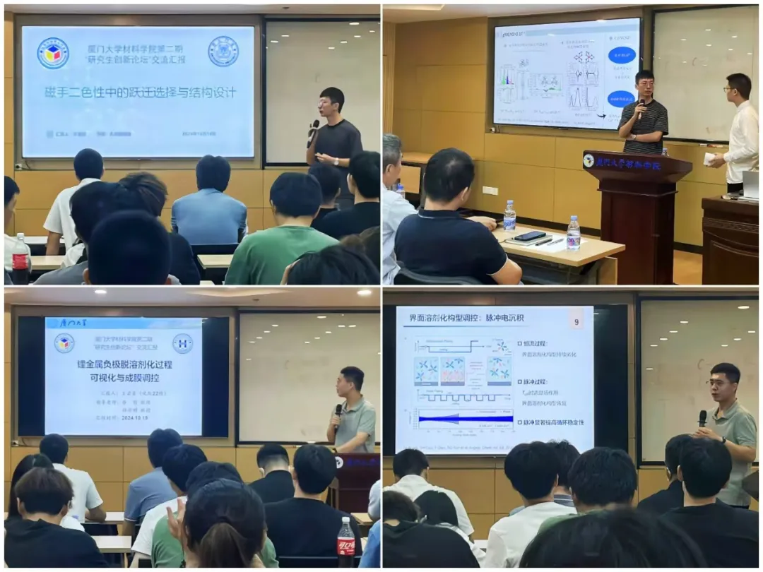 随后,来自材料学院的林泽文、夏永吉、车雨亮和李名景分别结合自身从事的研究方向做了报告,生动地展示了各自的研究成果,引起了师生们极大的兴趣,现场交流讨论气氛热烈。