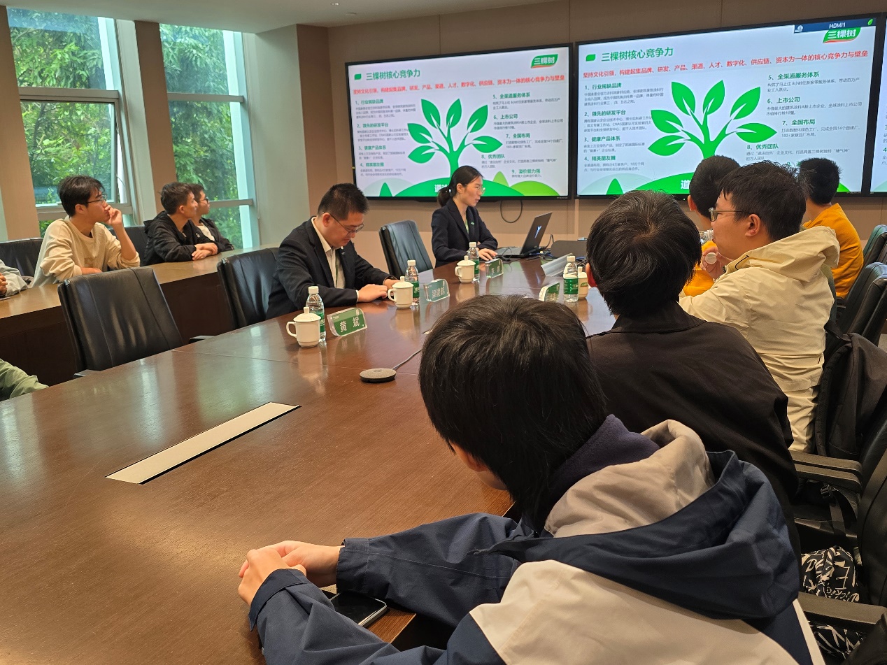 随后,大家前往会议室参加座谈。梁建鹤博士向大家详细介绍了三棵树漆的发展历程、企业文化以及对国家政策的深入理解和实践。三棵树漆创立于2002年,致力于在工程领域打造绿色一站式集成系统,在零售领域打造“七位一体”产品和马上住服务的美好生活解决方案。同时,梁博士对同学们所关心的公司人才选拔和培养、晋升体系以及大学生职业规划与发展问题进行了细致解答。