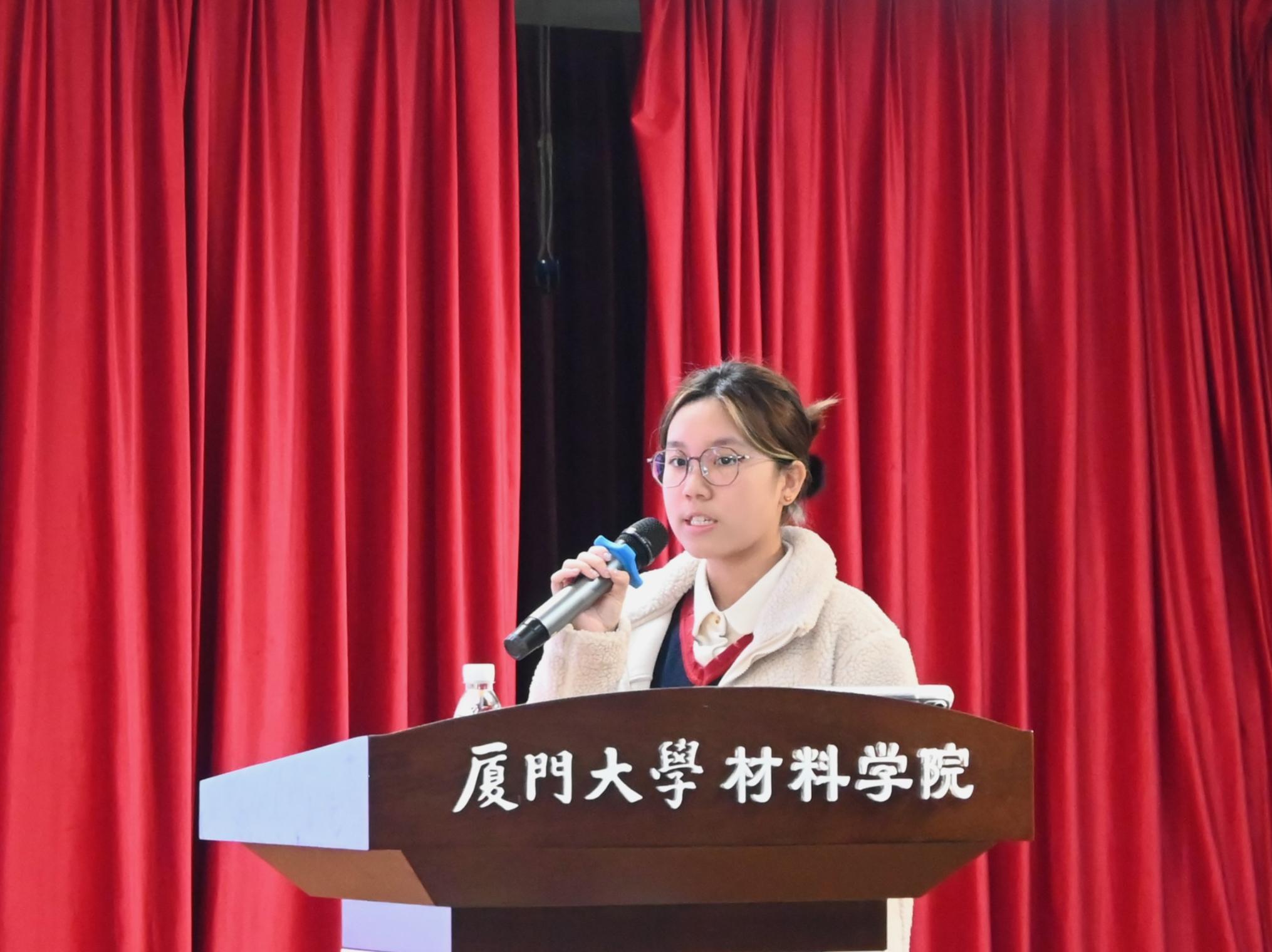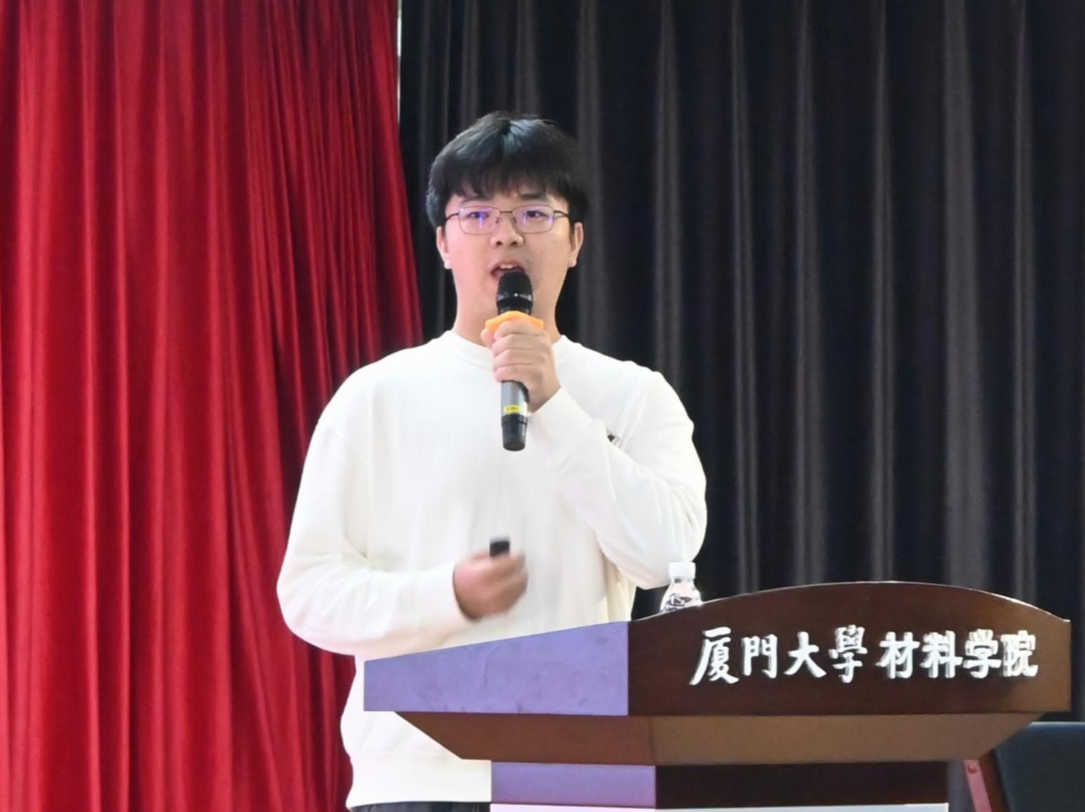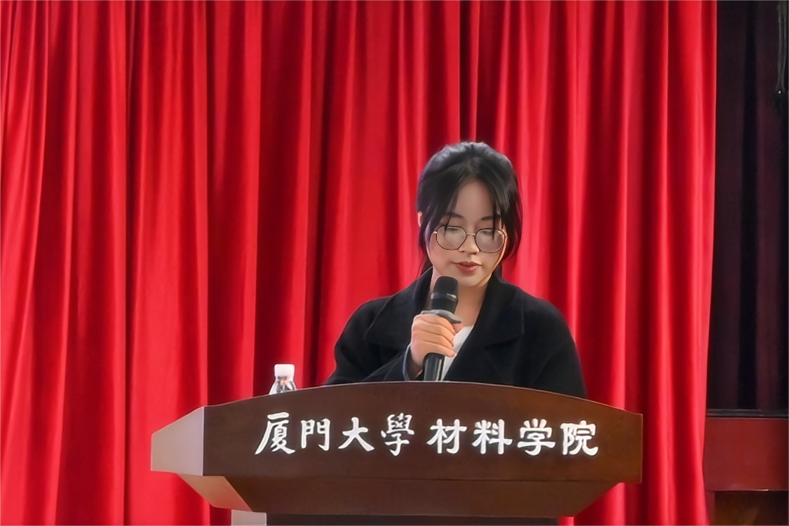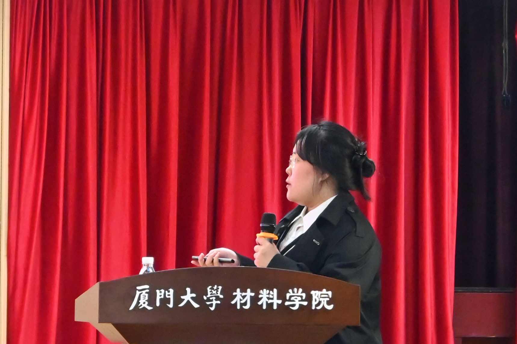 材料学院党员代表张家玮以《践行党的二十届三中全会精神,勇担材料强国使命》为题,围绕材料学科在国家战略中的重要地位,阐述了青年如何坚定理想信念、投身科技创新。他通过翔实的案例,深刻揭示了材料科学对国之重器的支撑作用,号召青年学子以青春热血助力科技腾飞。